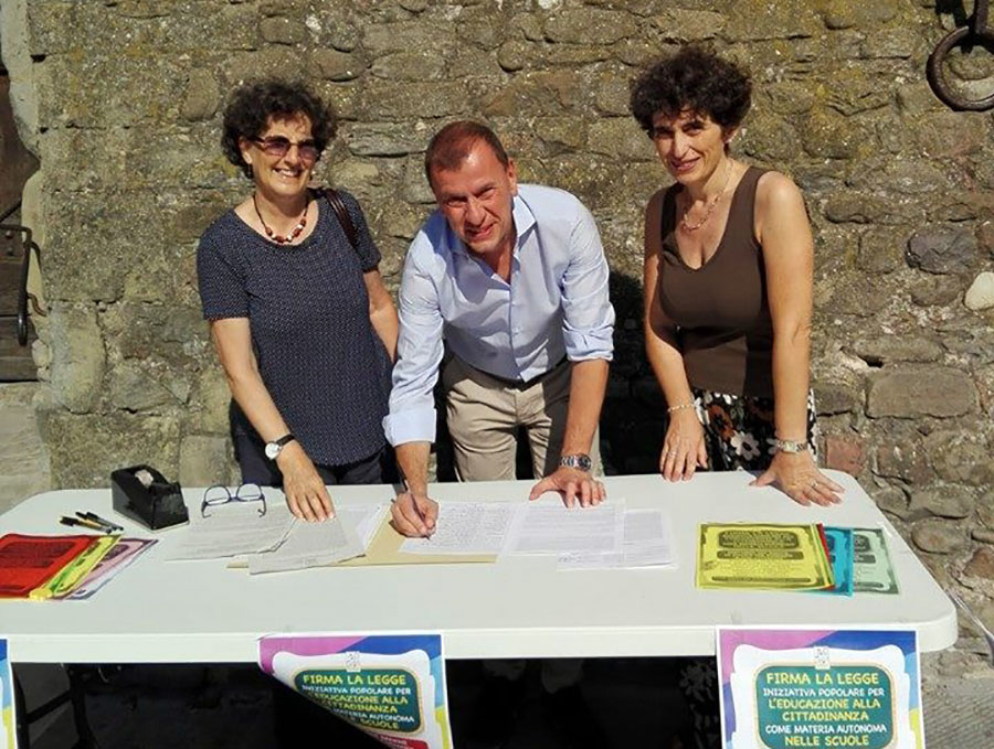 SCARPERIA E SAN PIERO – Il Comune è tra quelli che hanno aderito alla campagna nazionale promossa da Anci per presentare in Parlamento la proposta di legge di iniziativa popolare sull’introduzione della materia di Educazione civica nelle scuole (articolo qui). In 100 persone si sono fermate al banchino allestito in piazza dei Vicari sotto il Palazzo per siglare i moduli.