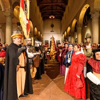 Il tutto nacque dalla conoscenza con Angelo Paolo De Lucia, maestro di danza rinascimentale che insieme a Gianni Mini, musicista e direttore, aveva formato l’Associazione “ Capriccio Armonico”. Angelo desiderava realizzare un corteo in costume con figuranti, musici e danzatori, io cercavo idee per raccogliere fondi per il restauro dell’Organo Stefanini. Durante una cena a casa mia nacque così l’idea di dare vita all’affresco denominato “Il Viaggio dei Magi” di Benozzo Gozzoli che impreziosisce la Cappella di Palazzo Medici Riccardi a Firenze. La prima edizione, il 7 gennaio 2012, vide fra gli altri sfilare ed esibirsi il Gruppo di San Michele a Ronta e il Gruppo del Palio del Diotto di Scarperia, poi pian piano si sono aggiunti gruppi provenienti da tante città e località italiane.