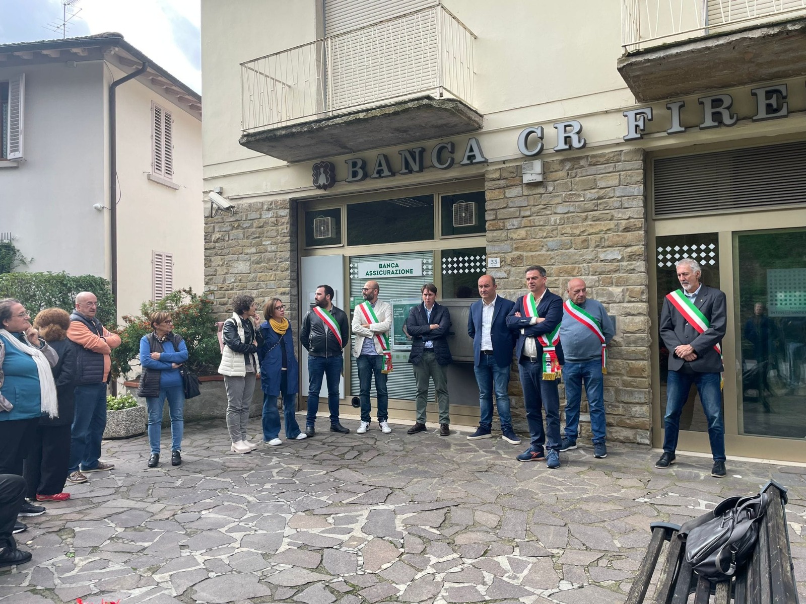 La mobilitazione di sindaci e Consiglieri regionali lo scorso Ottobre davanti alla banca di Londa.