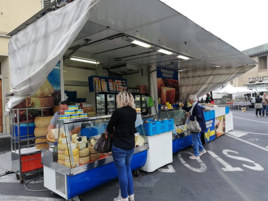 Una famiglia di commercianti, una famiglia di alimentaristi. E in più rami: “Il mio bisnonno aveva vari figli, Leandro, Napoleone, Aurelio, e e ciascuno poi prese un settore diverso, Leandro il pesce, chi il bar (avevano aperto un bar alla Magnolia), e mio nonno Aurelio gli alimentari, con l’attività ambulante, aprendo poi anche un negozio, una drogheria in centro, a Borgo, in piazza del Poggio, negli anni ’50. Che poi è passata ai figli Francesco e Franco. In seguito mio padre e mio zio si divisero, la mia famiglia restò nell’attività dei mercati, abbiamo acquistato un capannone alla Soterna, mentre mio zio Franco mantenne il negozio, ora chiuso. E poi è toccato a me, fare i mercati, insieme a mio babbo Francesco e a mia mamma Maria Teresa.”
