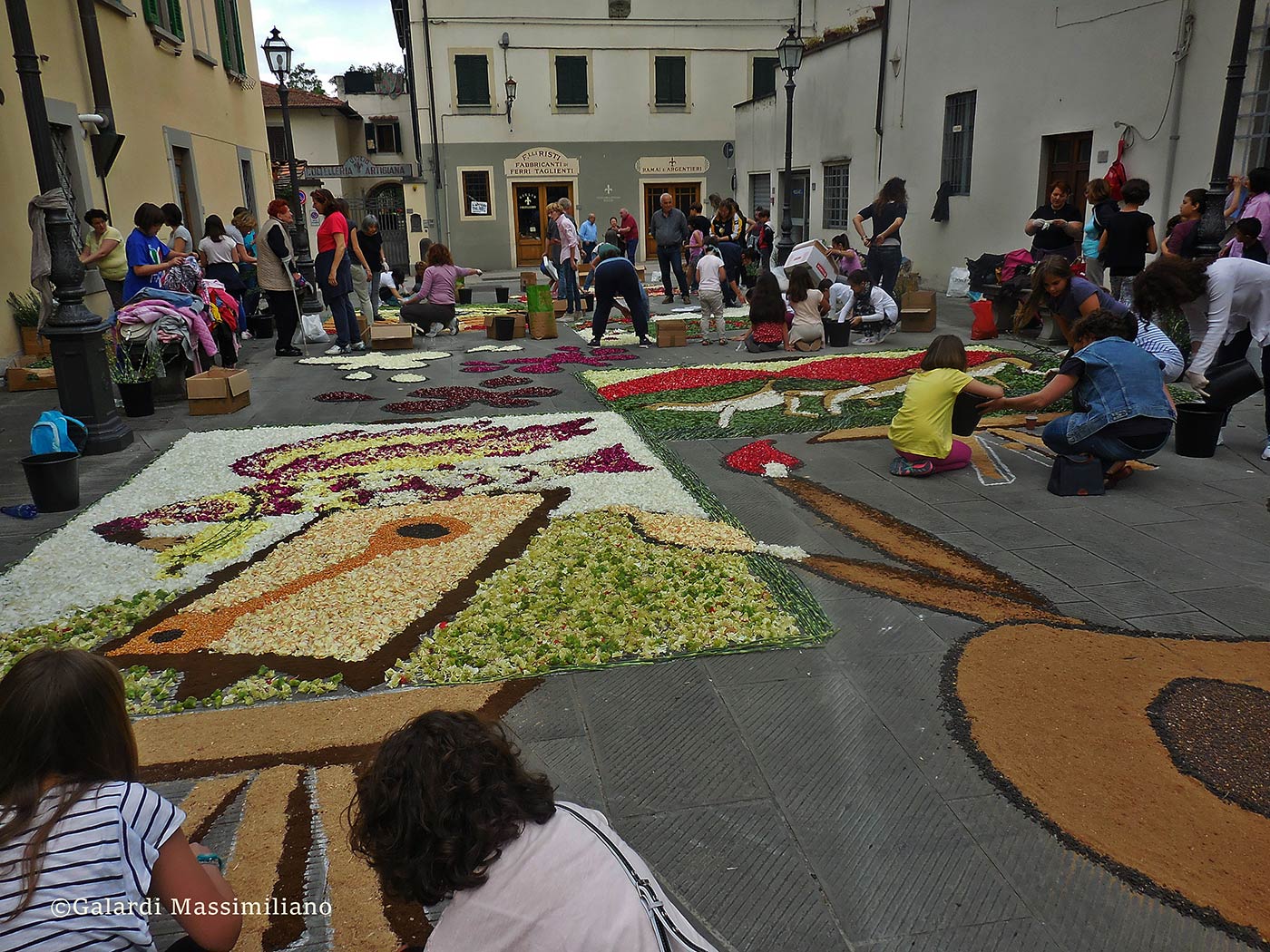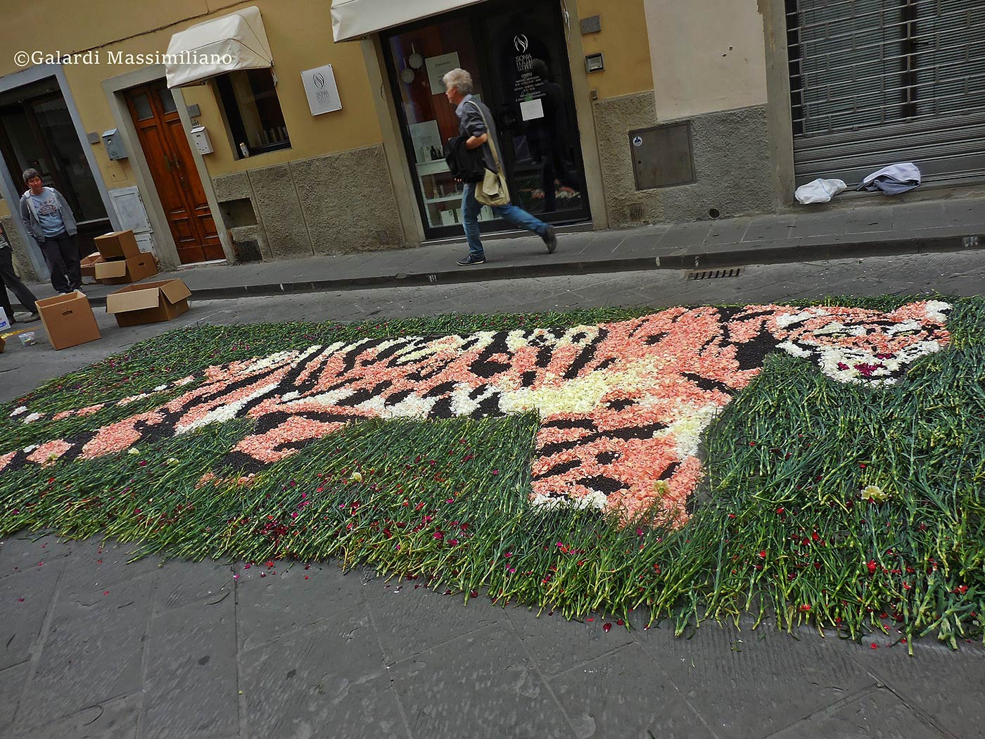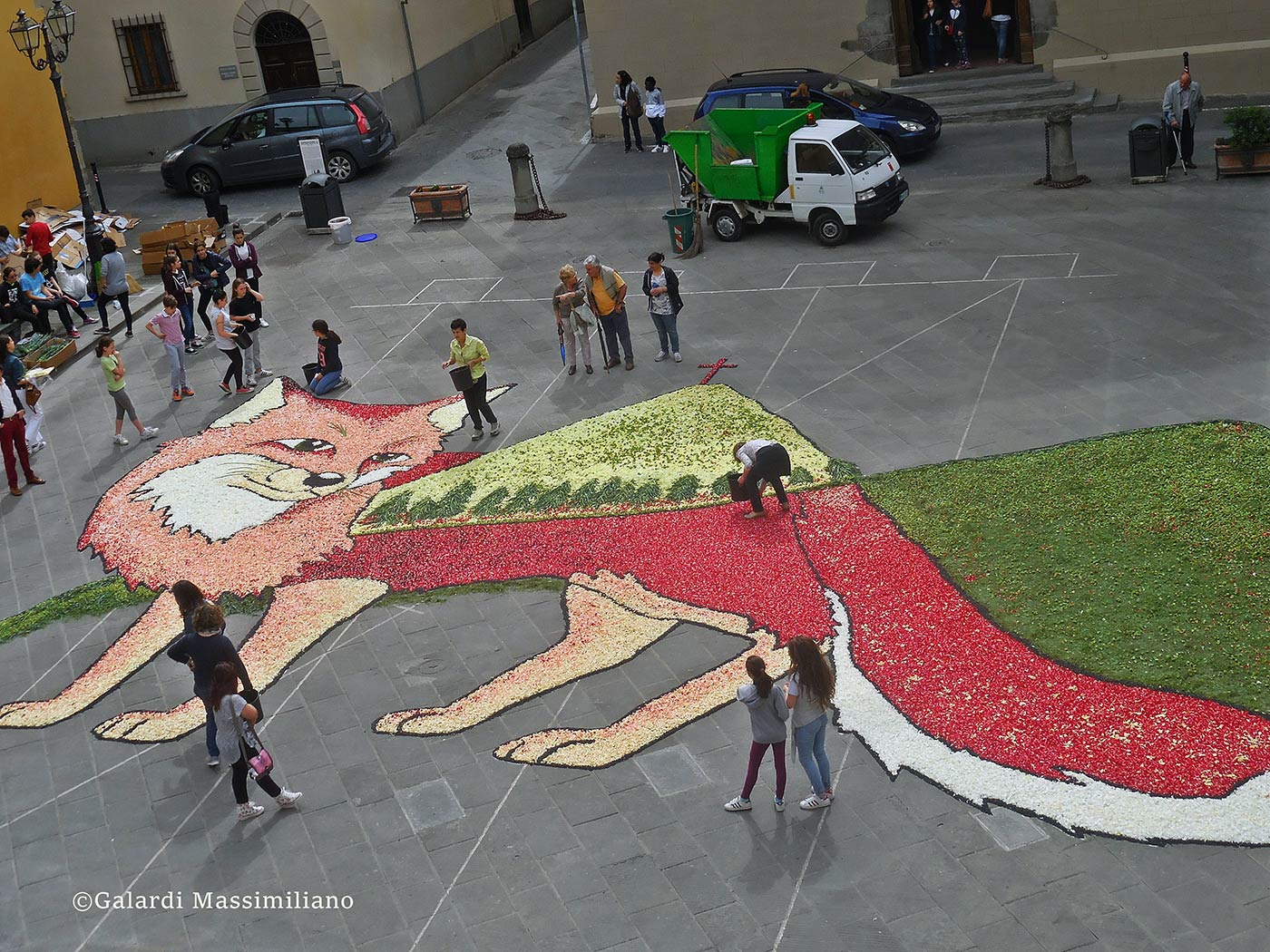 SCARPERIA E SAN PIERO – Edizione umida per la 36esima edizione dell’Infiorata che si è svolta per le vie di Scarperia. I quadri sono stati comunque realizzati per l’ammirazione dei visitatori, giunti anche dall’estero. Quest’anno il tema scelto erano gli animali in via d’estinzione. Il polipo, l’elefante, la tigre, il babbuino, l’ape, la coccinella, i serpenti e tantissimi altri, erano i “protagonisti” di questa spettacolare manifestazione. Tra i quadri, due erano in 3D, la coccinella e l’ape sul fiore, due vere opere d’arte.