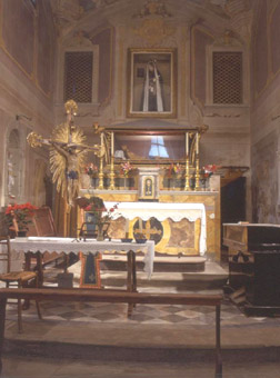 La cappella, oggi utilizzata solo in occasioni particolari, è ad un’unica navata e si presenta alquanto spoglia nonostante le suggestive decorazioni pittoriche sul soffitto del presbiterio che simulano una elaborata cupola. Ciò che attrae subito l’attenzione è il grande altare centrale su cui è posta l’urna di vetro che contiene la bellissima effigie in cera del Gesù Morto, opera di Clemente Susini, del 1798. L’espressione drammatica del volto ricorda l’analoga immagine dello stesso autore conservata nella Pieve di Fagna ( vedi cfr. Scarperia). In una nicchia, sopra l’altare, è conservata anche una grande figura della Madonna Addolorata col volto e le mani magistralmente realizzate in cartapesta e gli abiti di stoffa (la “vestizione” di questa immagine era oggetto di un rituale che si è tramandato fino agli inizi del secolo XX). Sulla destra dell’altare si trova una Madonna col Bambino in terracotta policroma, di scuola robbiana e di notevole bellezza. Nella cappella e nella sacrestia si conservano arredi, suppellettili e vari utensili attinenti alle attività e ai riti sacri tipici di ogni confraternita di Misericordia. (L’Oratorio è visitabile previo accordo con la Misericordia di Vicchio in P.za Giotto 55 - Tel. 055.849.7409).