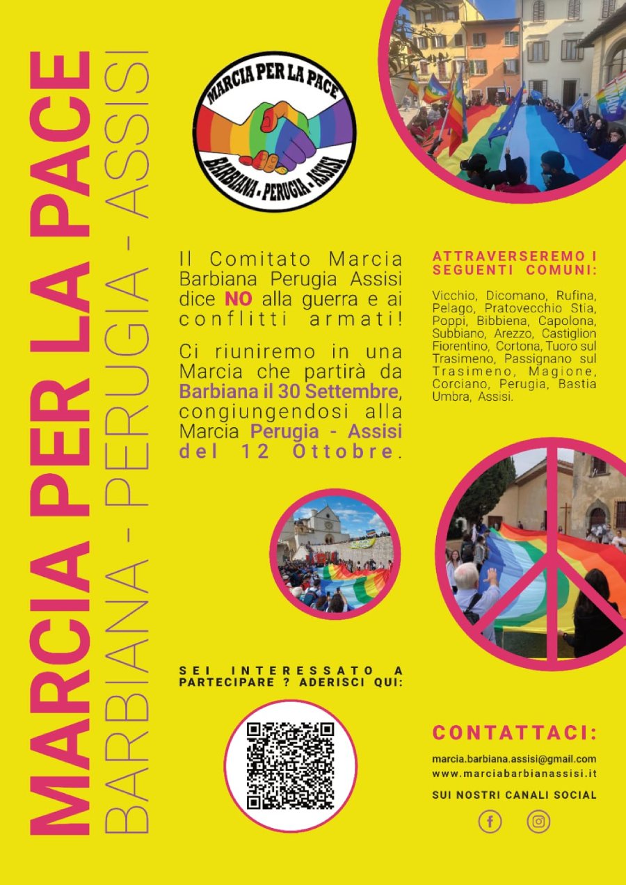 VICCHIO – Si terrà dal 30 Settembre al 12 Ottobre la marcia da Barbiana ad Assisi: 228 Km per la pace e contro ogni forma di guerra. Si tratta di un’iniziativa promossa da un gruppo di cittadini, associazioni, enti e scuole col sostegno del Comune di Vicchio.