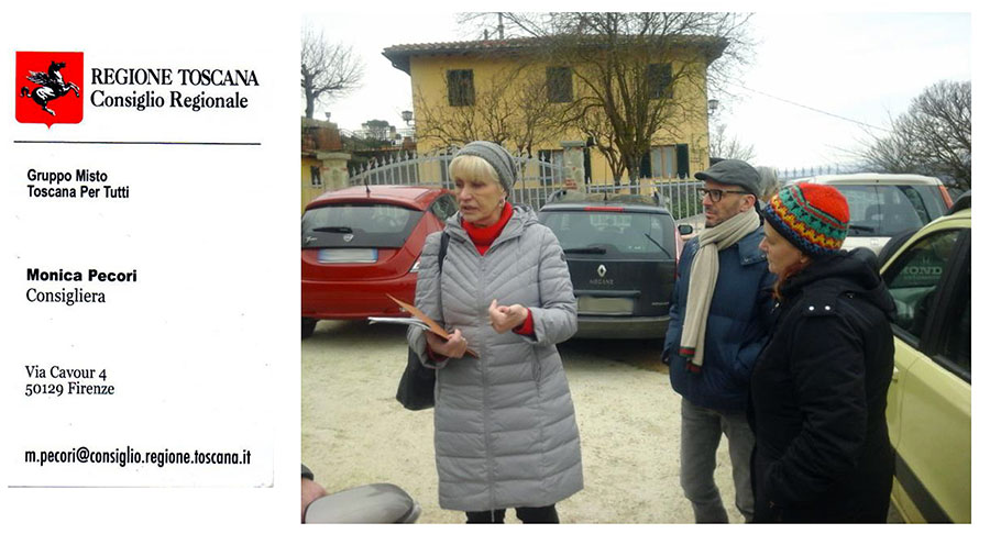 Avevamo seguito il suo incontro con il Comitato dei cittadini di Massorondinaio che, con determinazione, lottano per la loro qualità di vita a ridosso di un impianto dannoso per la salute pubblica. Era una fredda mattina dello scorso mese di febbraio. La consigliera regionale Monica Pecori arrivò da Livorno con la sua utilitaria, interessata alla questione, senza alcun tornaconto elettorale, distaccata da ogni strumentalizzazione politica o di partito. Unica, o unico, che dir si voglia, esponente istituzionale a farsi carico, con un atto scritto, delle istanze di questa cospicua fetta di popolazione. Di altri non sappiamo.