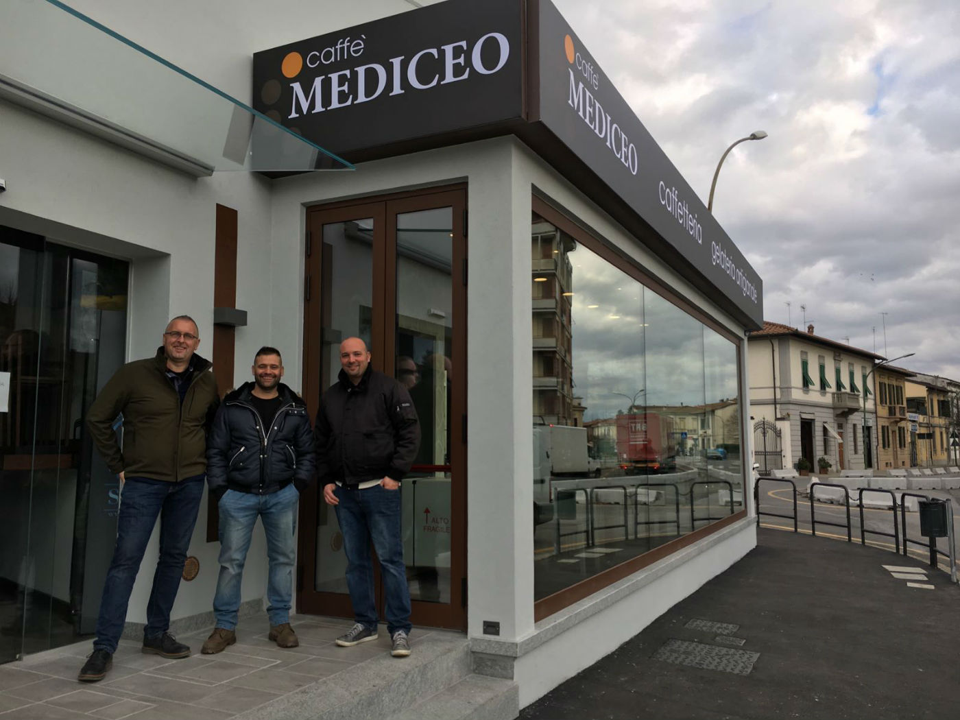 “Il Caffè 90 era un locale storico – racconta Sandro Frassineti, uno dei soci del Caffè Mediceo – ma storico nel senso d’età, perché non era riuscito ad evolversi dal punto di vista di attrezzature e d’offerta al pubblico. Il nostro intento qui è stato quello non solo di fare un rinnovo completo dei locali, ma di cambiare soprattutto l’offerta da proporre al cliente per cercare di andare incontro a diverse fasce d’età. Qui si lavorava ancora su una formula di self-service sul pranzo, cose che ci siamo resi conto essere totalmente superata. Il pranzo al giorno d’oggi si fa seduti al tavolo, con calma e magari nell’attesa si legge il messaggino sul telefono o la mail. Per andare in contro a questa tendenza, abbiamo istallato sotto tutte le nostre postazioni delle prese di ricarica ed USB per i dispositivi elettronici, proprio per dare al cliente il massimo del confort. I pranzi che verranno serviti saranno cucinati nelle nuove cucine allestite al piano di sopra, che sia in termini di spazio che di attrezzature ci danno la possibilità di poter proporre qualcosa di diverso e secondo noi migliore rispetto a prima”.