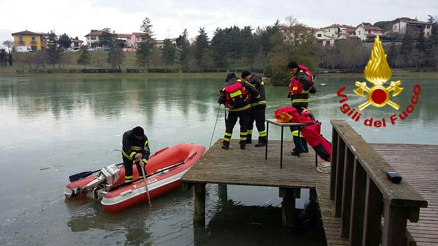 I sommozzatori hanno iniziato la ricerca nel lago nella zona indicata dalla padrona individuando e recuperando il cane privo di vita.