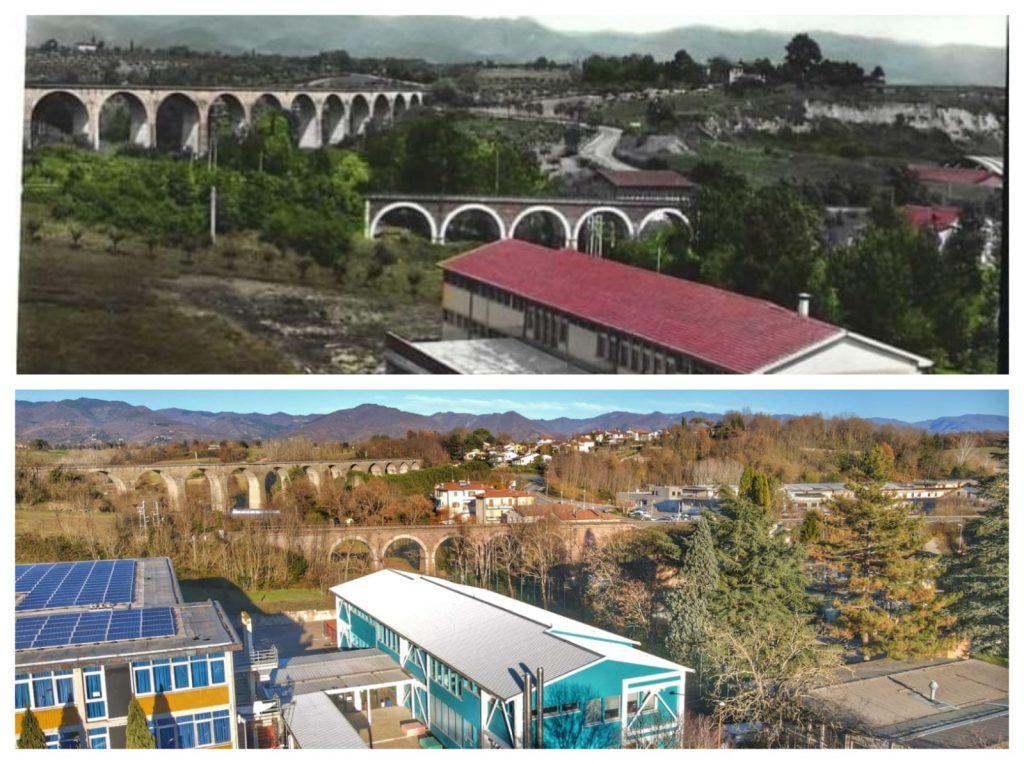BORGO SAN LORENZO – È speciale la visuale che offre questa cartolina d’epoca, con un panorama dei ponti della ferrovia a Borgo San Lorenzo e della scuola in via don Minzoni. Così il drone di Luigi Miele ha pensato bene di aggiornare l’immagine ad oggi. E le differenze sono notevoli….