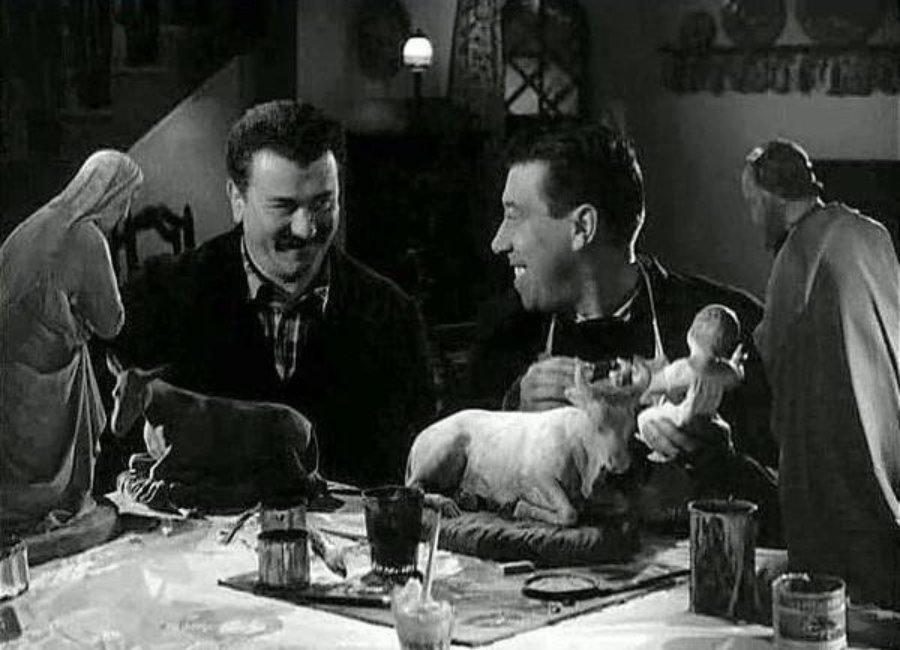 Era oramai Natale e bisognava tirar fuori d’urgenza le statuette del Presepe, ripulirle, ritoccarle col colore, riparare le ammaccature. Ed era già tardi, ma don Camillo stava ancora lavorando in canonica. Sentì bussare alla finestra e, poco dopo, andò ad aprire perché si trattava di Peppone.