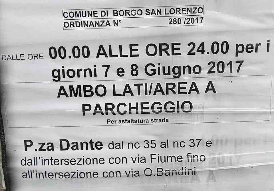 Non contenti che mezza Borgo fosse chiusa al traffico e quindi al parcheggio, cosa hanno pensato(?) questa volta? Rifacciamo l’asfalto di piazza Dante, da anni devastato.