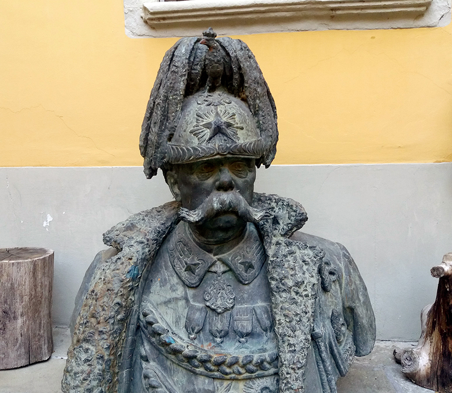 Recentemente ho visto proprio questo busto appoggiato in terra nel cortile grande di Villa Pecori Giraldi che, peraltro, ha ospitato anche un altro regnante quale Vittorio Emanuele II.