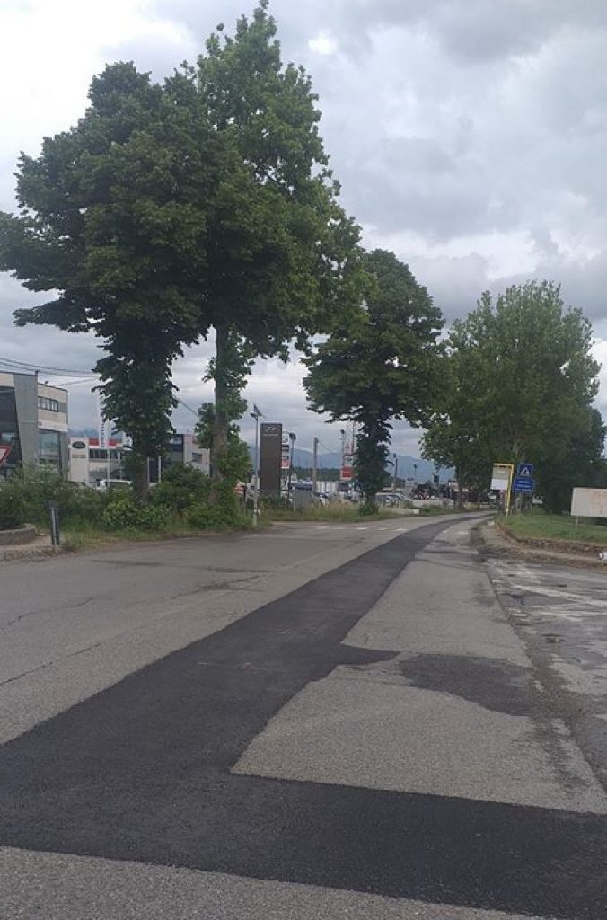 Una striscia d’asfalto, lunga una sessantina di metri, che copre i lavori svolti sul tratto nei giorni scorsi. Il tratto però è stato riasfaltato male, tanto che la strada risulta impraticabile con la macchina, poiché l’asfalto non ha una superficie regolare.