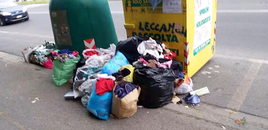 BORGO SAN LORENZO – Vestiti e sacchetti di vetro sparsi a terra e cassonetti stracolmi. Questa la situazione in viale della Resistenza a Borgo San Lorenzo segnalata da un lettore.