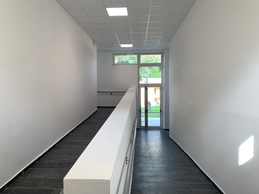 L’intervento, concluso, ha visto la realizzazione di un nuovo edificio realizzato tra la palestra e la Scuola Secondaria di primo grado. I nuovi spogliatoi, quelli vecchi sono stati demoliti e ricostruiti, la nuova piccola palestra e la palestra esistente, completamente riqualificata, sono strutture Nearly Zero Energy Building, ovvero quasi a energia zero; edifici che riducono quasi del 100% i consumi energetici grazie all’auto produzione di energia da fonti rinnovabili (impianto fotovoltaico) e ai complessi macchinari di nuova generazione, sommati ovviamente agli interventi edilizi sulle strutture (ad esempio cappotto e infissi).