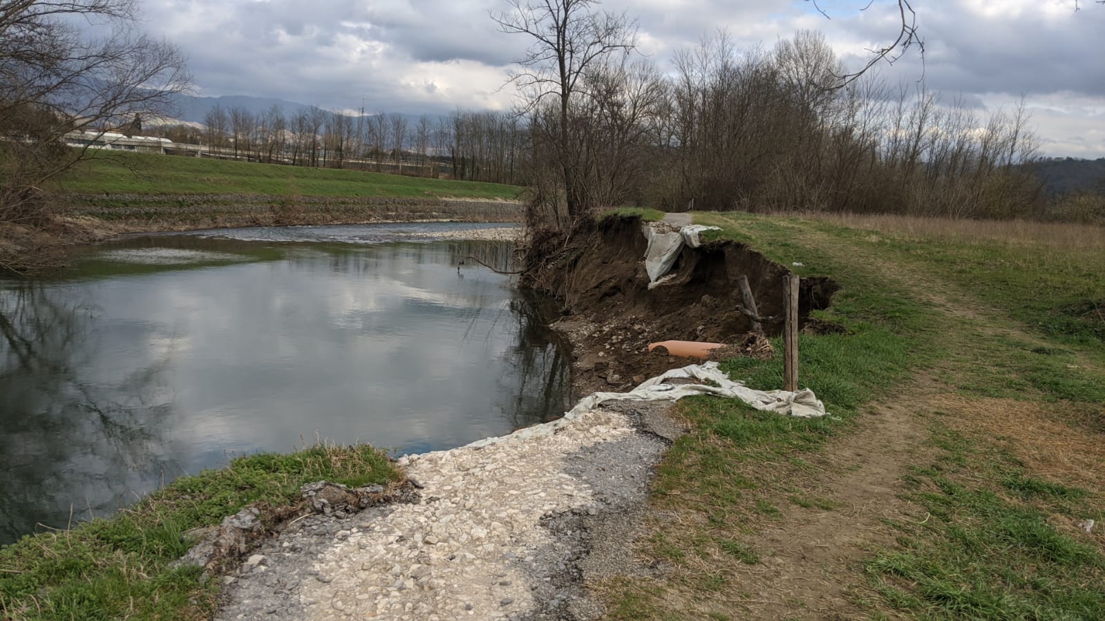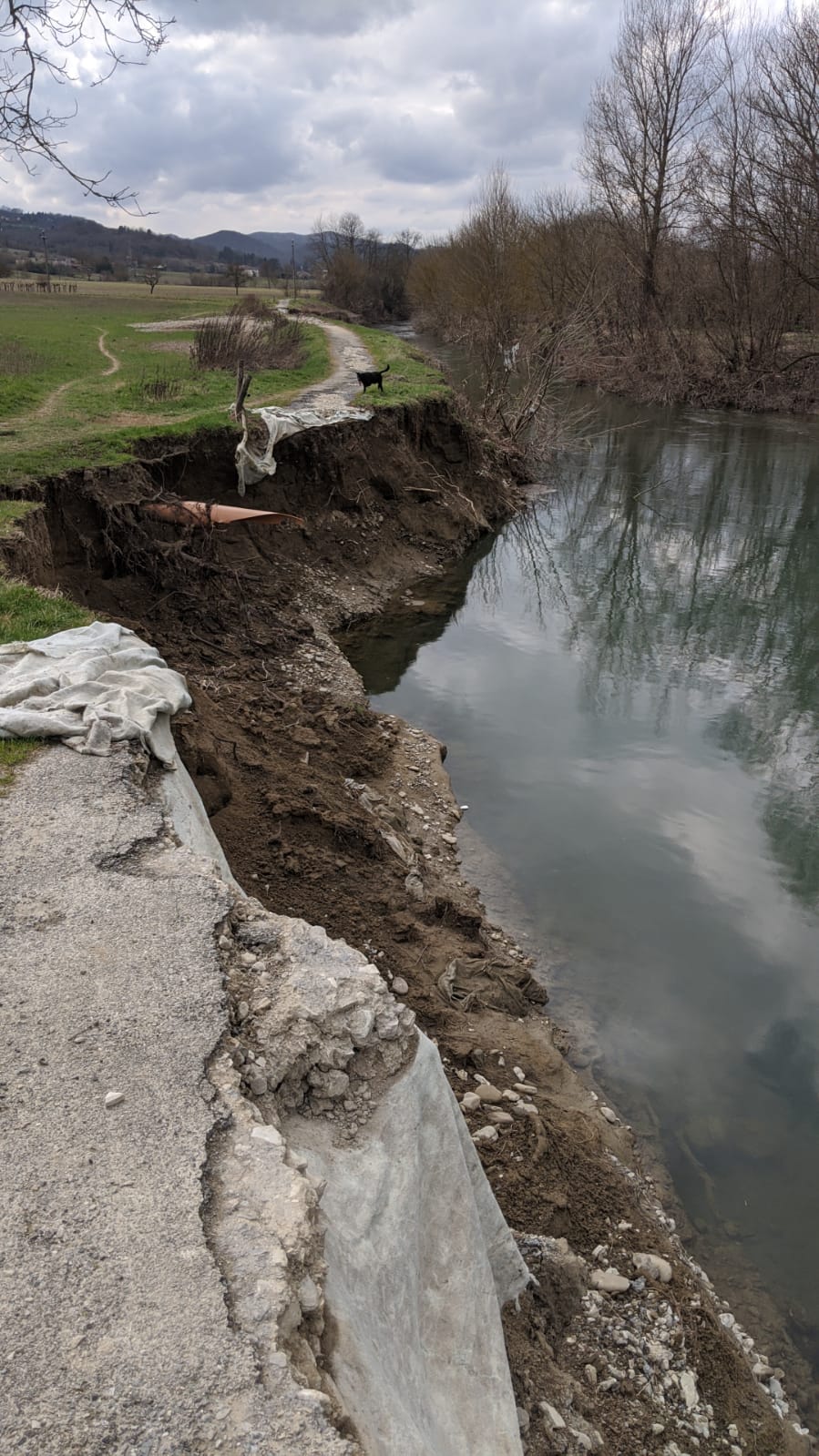 La frana più importante riguarda (vedi foto) un tratto compreso tra Vicchio e Borgo San Lorenzo, nel quale il fiume ha scavato una grande ansa sull’argine trascinando via una parte del percorso e costringendo i frequentatori a creare un percorso alternativo nei campi e quindi nel fango.