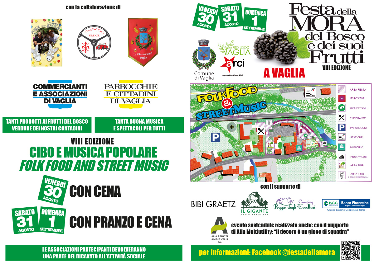 VAGLIA – Venerdì 30, sabato 31 agosto e domenica 1° settembre il Comune di Vaglia, Pro Loco, Circolo Arci di Bivigliano, attività commerciali e associazioni di Vaglia organizzano l’ottava edizione della “Festa della mora, del bosco e dei suoi frutti”.