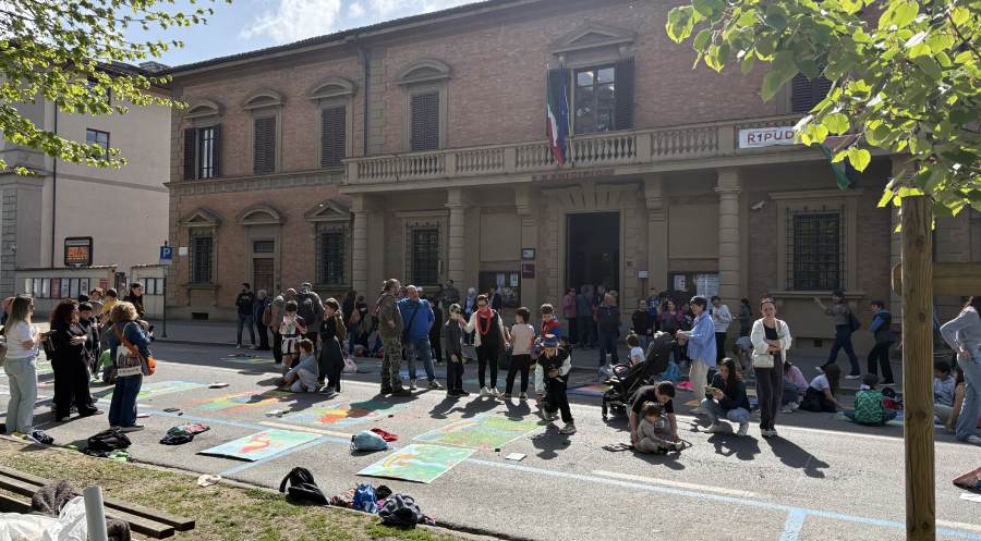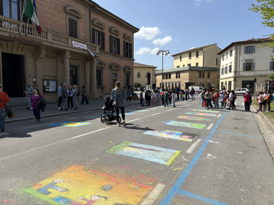BORGO SAN LORENZO – Questa mattina, Giovedì 16 Aprile, in Piazza Dante, davanti al municipio, i bambini delle classi quarte delle scuole elementari dell’istituto comprensivo di Borgo San Lorenzo hanno realizzato delle bellissime opere sull’asfalto, per l’edizione 2026 di “Giò Madonnari”, organizzata nell’ambito della manifestazione “Fiorinfiera”.