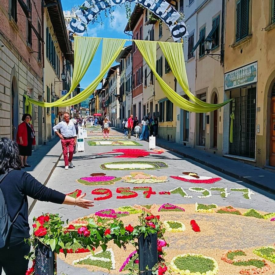 SCARPERIA E SAN PIERO – Domenica 25 maggio, il centro storico di Scarperia si è trasformato in un’esplosione di colori per la 44ª edizione dell’Infiorata. La storica Via Roma e le piazze dei Vicari e Clasio sono state ornate da meravigliosi quadri floreali ispirati a “Carosello”, il celebre programma televisivo andato in onda tra il 1957 e il 1977.