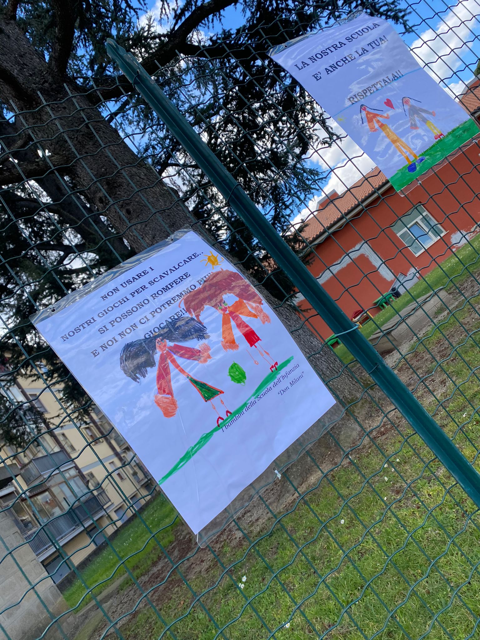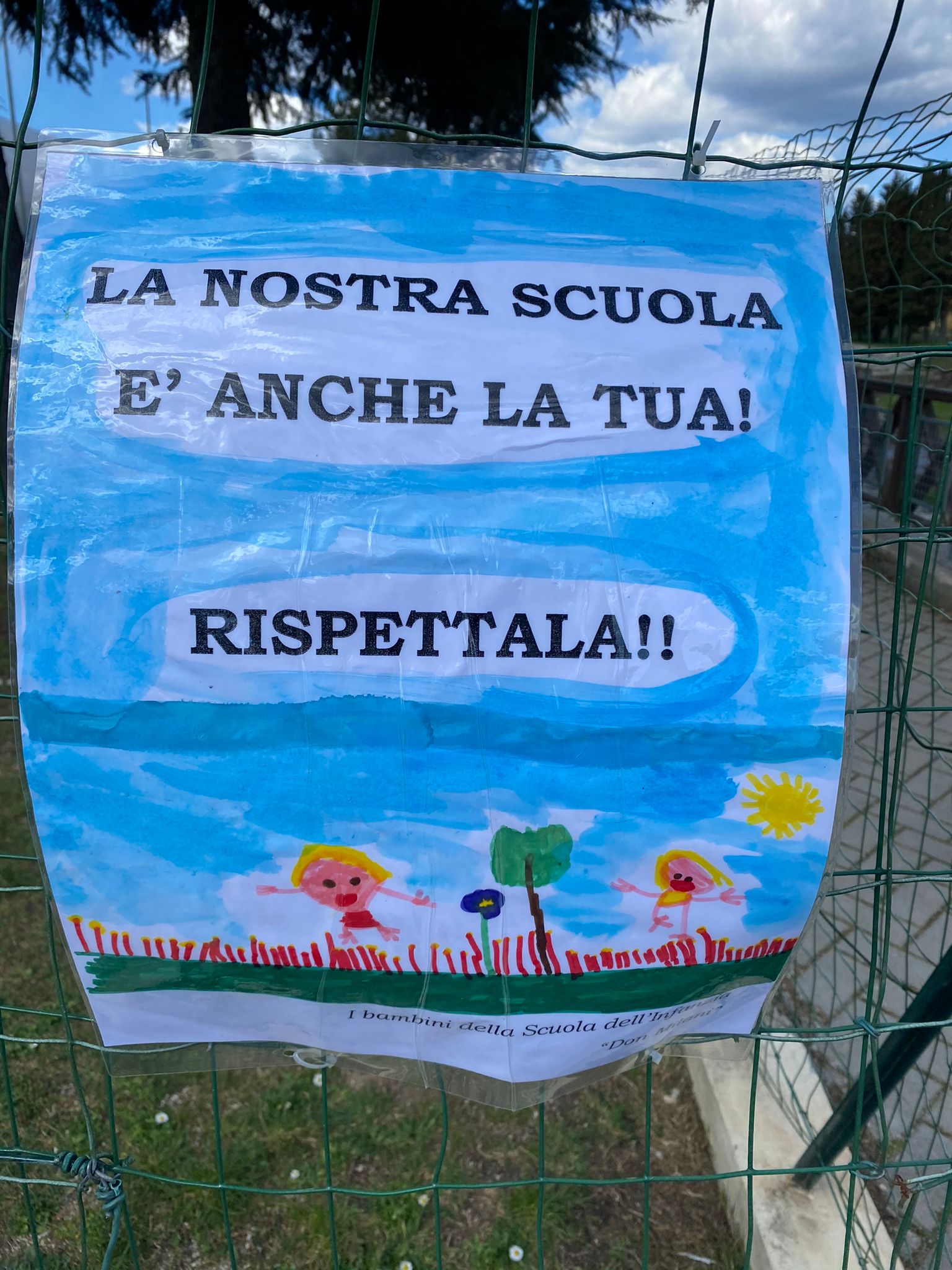Ed allora i piccoli alunni della scuola hanno deciso di lasciare dei colorati moniti a chi sciupa i loro giochi, rompe la rete…invitandoli a rispettare la loro scuola.