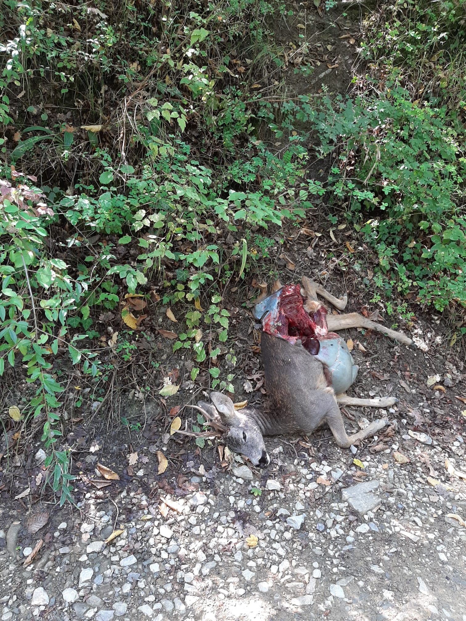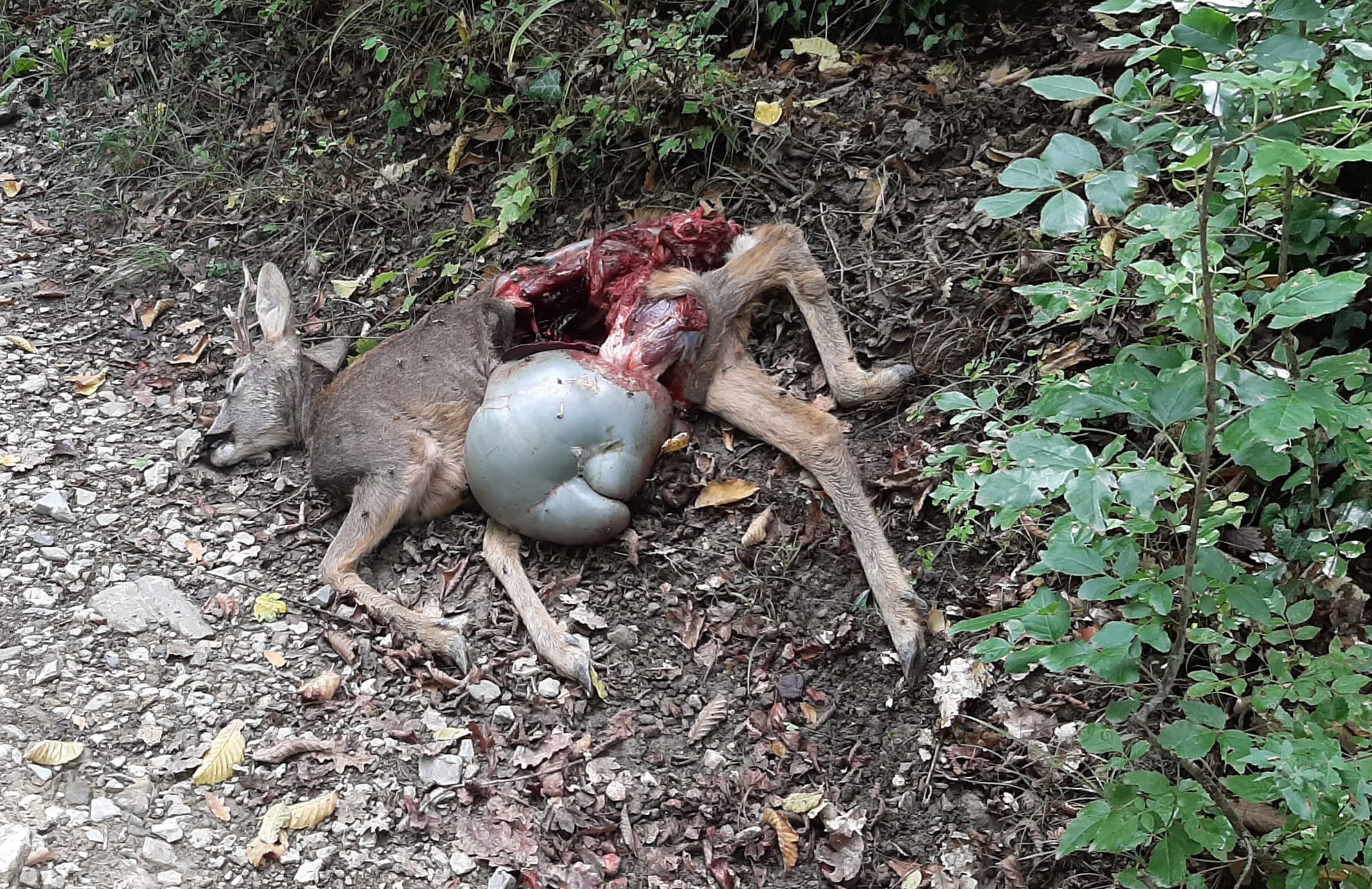 SCARPERIA E SAN PIERO – Resti di un capriolo sul sentiero che dalla fortezza di San Martino porta a località Ischieti.