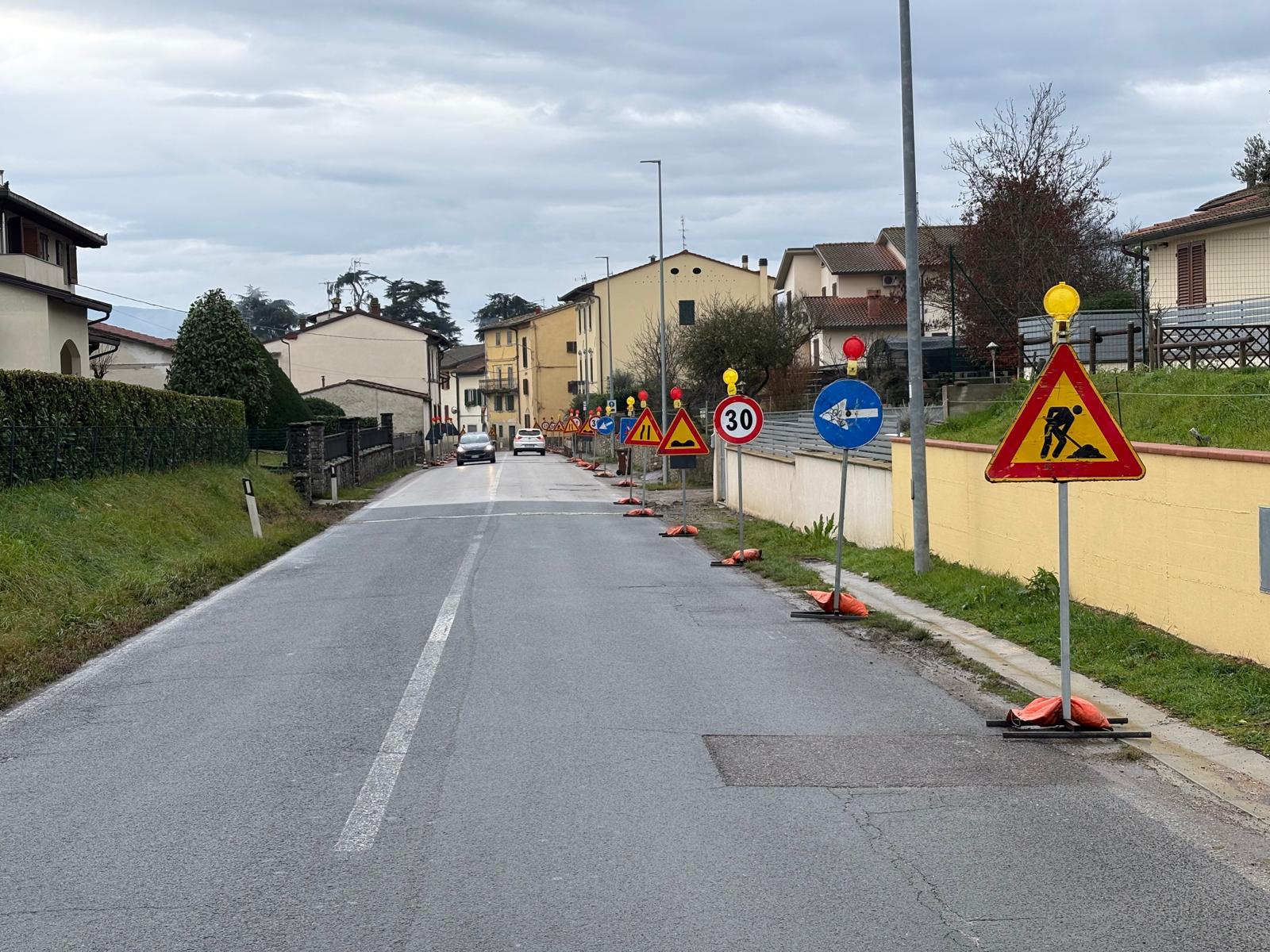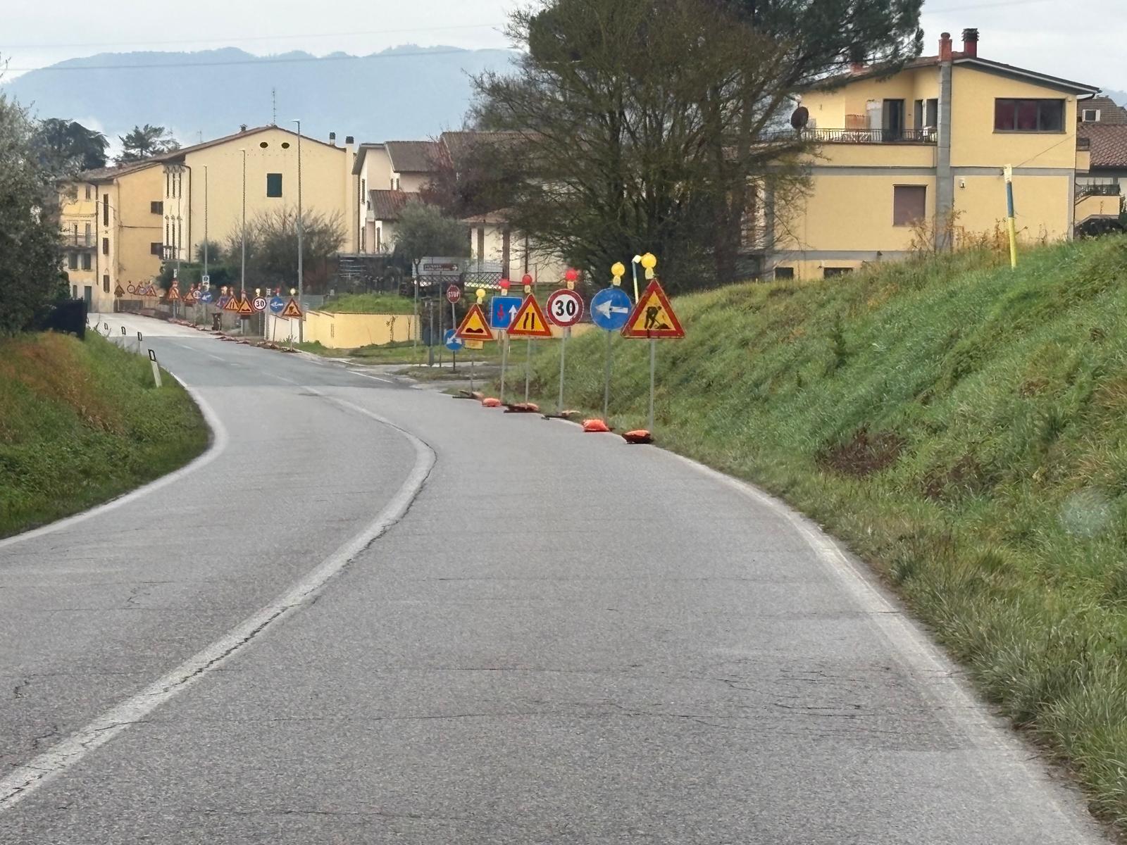 BORGO SAN LORENZO – È una vera e propria selva di cartelli quella apparsa in questi giorni a Panicaglia, frazione di Borgo Sal Lorenzo lungo la Sr 302 Faentina. Si tratta di due lunghe file di segnali posti a pochissimi metri l’uno dall’altro su entrambi i lati della strada, che hanno catturato l’attenzione di vari lettori che ci hanno segnalato la cosa. Un cantiere singolare, tanto che a prima vista sembra che ingombrino più i cartelli dei lavori.