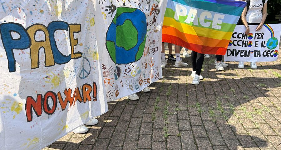 Oltre 200 gli studenti della classi terze della Secondaria di Primo Grado che hanno marciato per le strade di Borgo San Lorenzo con striscioni e bandiere della Pace