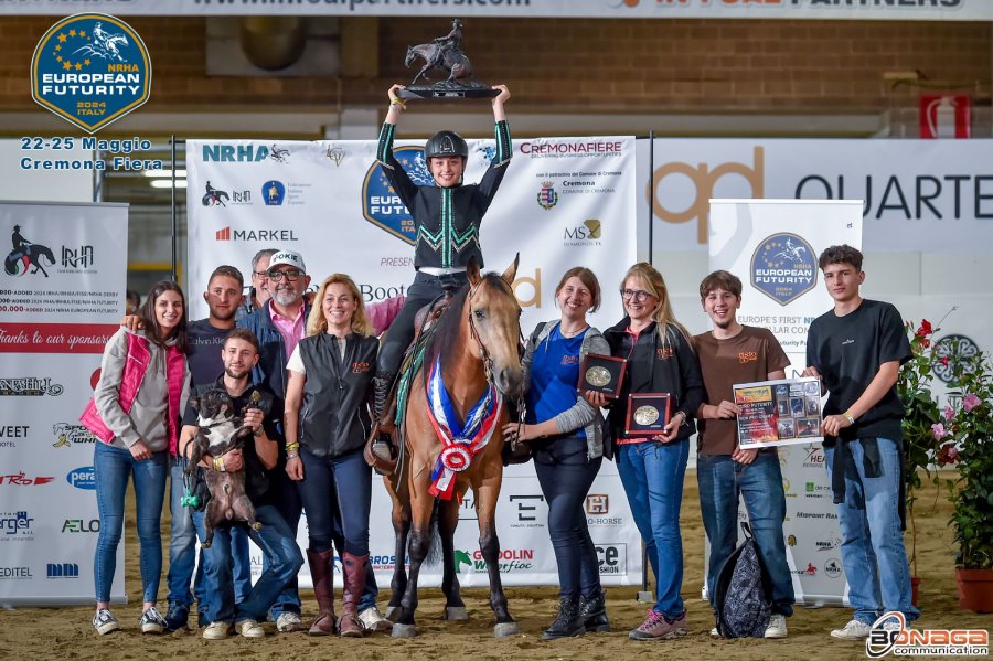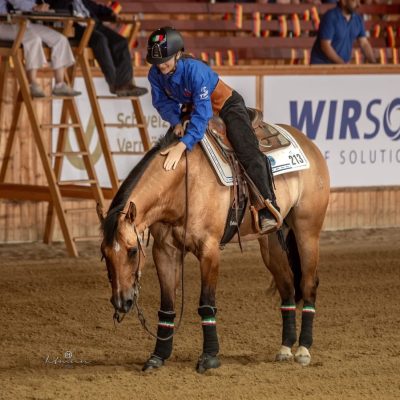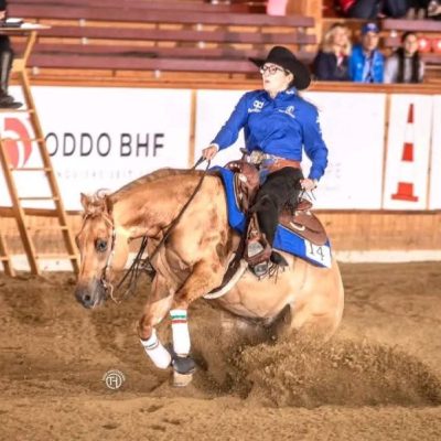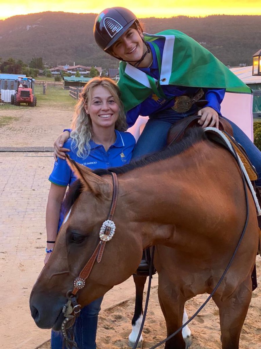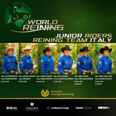 Giulia Travagli e il cavallo “Kn Skeets Blasterdun” hanno conquistato la medaglia di bronzo al junior reining team al campionato mondiale di reining 2023 a Ginevra, a “casa Schumacher”.