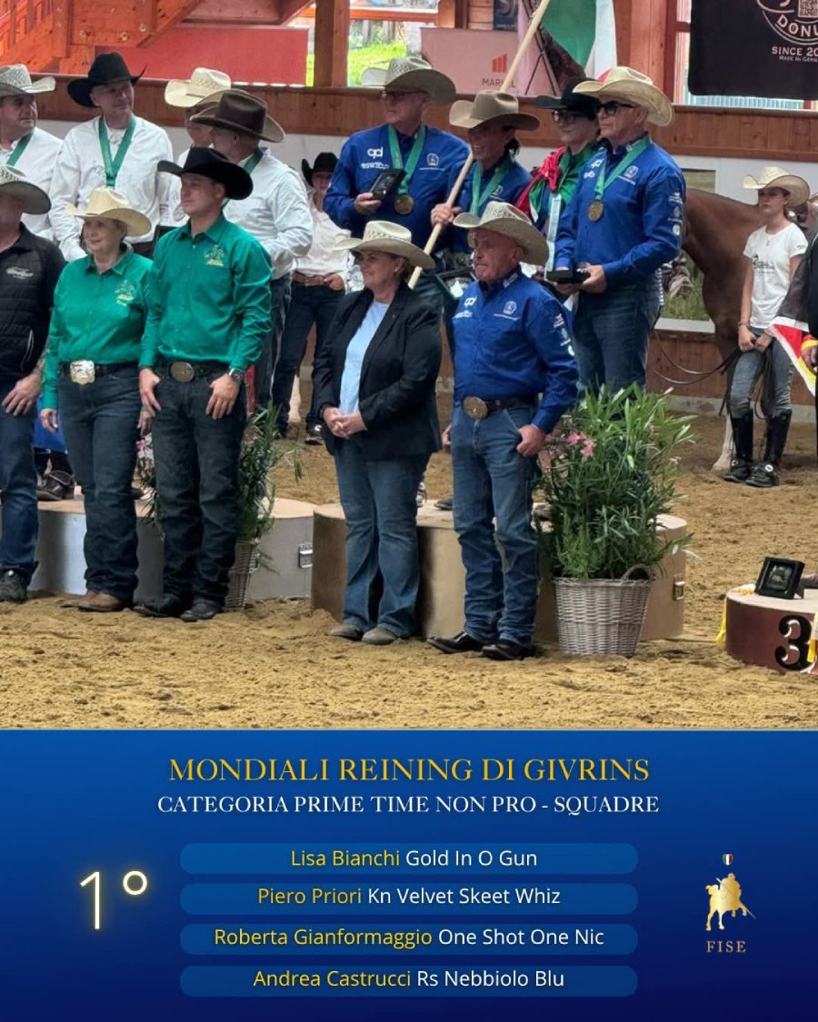 Poi Lisa Bianchi e “Gold in O Gun” medaglia d’oro al campionato mondiale di reining categoria “Prime Time team”. E ancora Giulia Travagli, Aurora Provvedi, Sofia Pini, Martina Rocchi e Grace Coppola argento al Saggio delle scuole – Finali Nazionali avviamento al Reining 2023 a Corropoli. Prossimo evento per la scuola di equitazione mugellana dal 5 al 15 Novembre con Italian Futurity 2025 e Italian championship. In bocca al lupo.