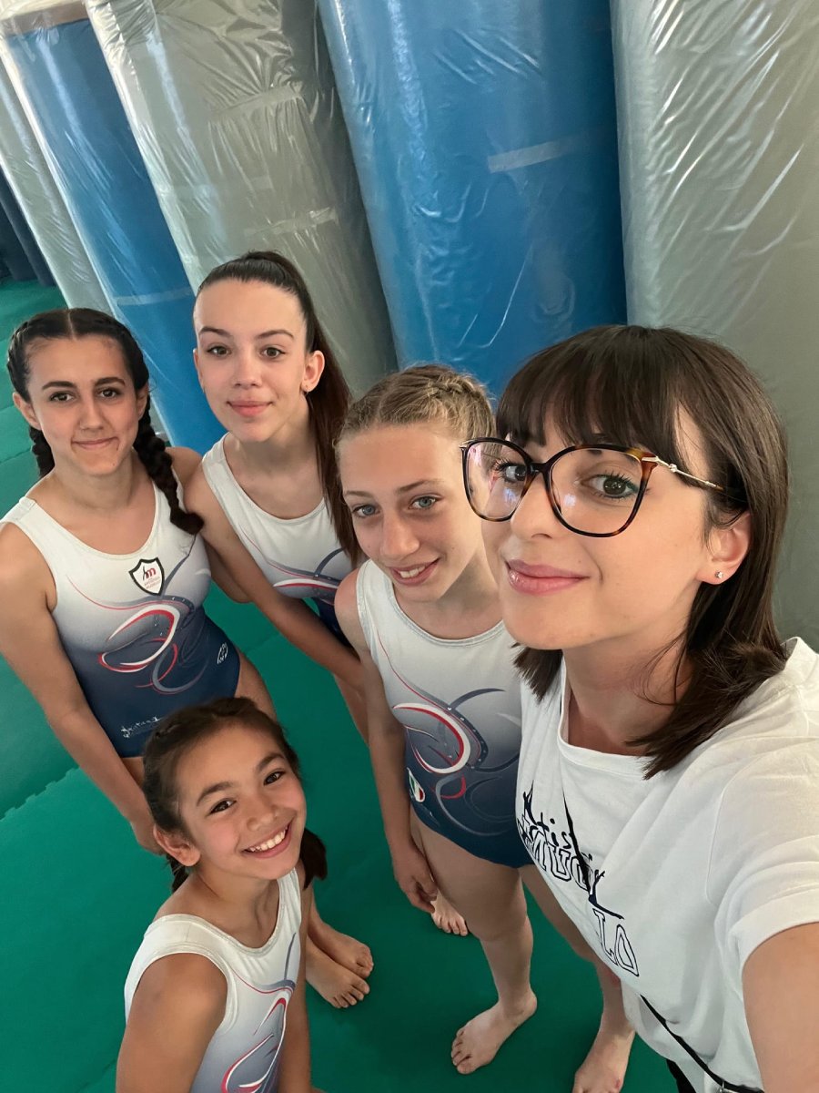 La squadra di Mini 4 con Mariel Manzi, Giulia Taci e Vittoria Mari si classificano ottave con la conquista dell’oro al corpo libero di Mariel. Nella gara di specialità Vittoria vince l’oro a parallele, Giulia il bronzo a trave e Mariel l’oro a volteggio e il bronzo a trave. Grazie ragazze per quello che avete saputo esprimere sul campo di gara e per aver portato in alto la bandiera dell’Artistica Mugello”.
