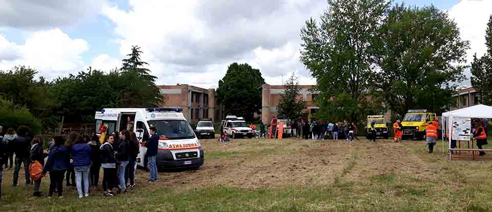 Se la scorsa settimana gli operatori dell’Ufficio Associato di Protezione civile e tre rappresentanti dell’Ordine degli Architetti hanno spiegato l’organizzazione e il funzionamento della Protezione civile e come ci si comporta e protegge in una situazione di rischio o quando si verifica un terremoto, ieri è stata la volta di “vedere” e “provare” con i volontari di Crs-Anpas di Borgo, Misericordia di Dicomano e Borgo, Vab Mugello, oltre ai tecnici dell’Ordine degli Architetti. Mossi da curiosità e interesse tra ambulanze, mezzi fuoristrada e anticendio boschivo gli studenti hanno rivolto domande ai volontari e potuto vedere da vicino tecniche di primo soccorso e intervento sanitario, attività e interventi di spegnimento d’incendio.