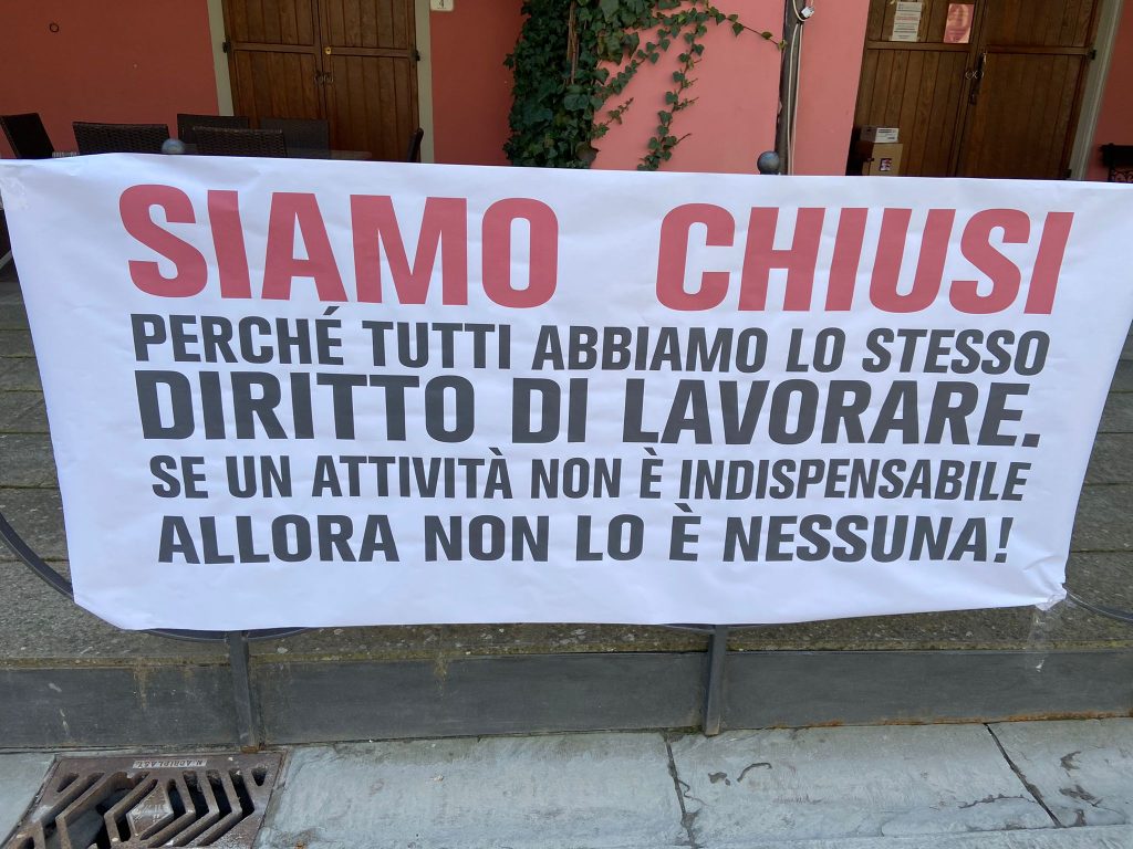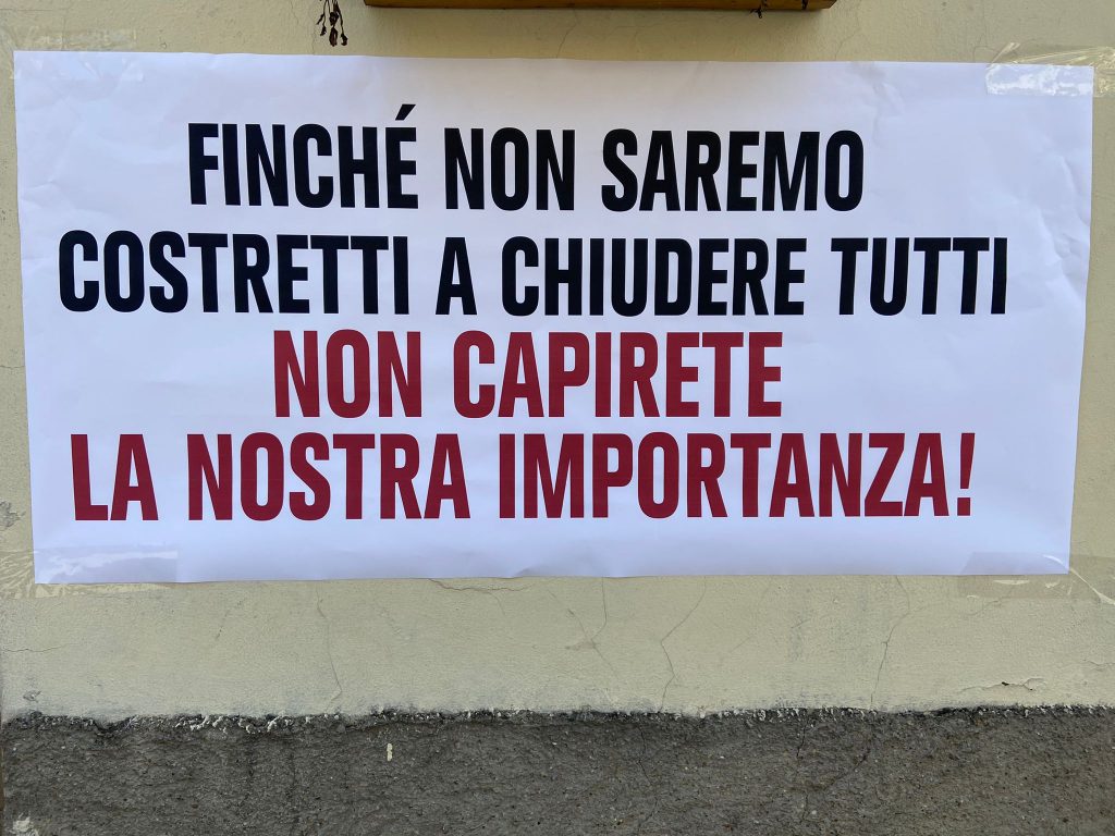 “Siamo chiusi perché tutti abbiamo lo stesso diritto di lavorare” recita uno dei tanti cartelloni apparsi nel centro storico di Firenzuola. E la protesta, pacifica, è arrivata anche in Municipio, con un gruppo di commercianti ed artigiani ricevuti dal sindaco Giampaolo Buti che ha ascoltato le loro richieste.