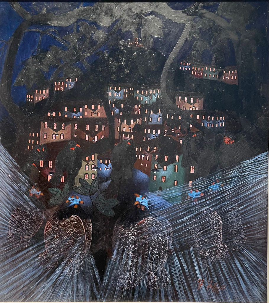 Non scorderò mai la mia prima visita a Marradi, la bellezza del paese quasi collodiano incastonato nel verde primaverile dell’Appennino, l’entusiasmo di Flavio, che in mimetica ci ha guidato alla scoperta del piccolo museo dedicato al grande poeta Dino Campana, la visione di fotografie e autografi, della prima edizione dei Canti orfici, di loro varie traduzioni, di un eccellente filmato sulla vita e l’opera di Campana stesso e dei quadri convincenti di Francesco Galeotti.