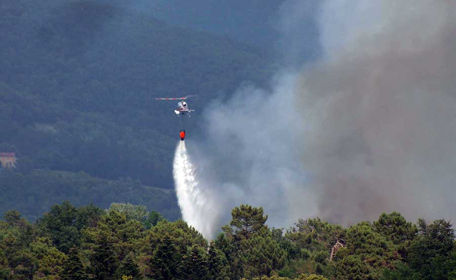 L’intervento, che presumibilmente durerà complessivamente 6-7 ore, sembra sia stato di una certa difficoltà perché il punto esatto pare non fosse raggiungibile dai mezzi dei Vigili del Fuoco in quanto le strade non risulterebbero percorribili a causa degli alberi abbattuti dalla tempesta di vento che si scatenò in Mugello il 5 marzo scorso (articolo qui, ndr) e che sarebbero ancora oggi a terra. E’ stato necessario l’intervento dell’elicottero che per più di cinque ore ha scaricato sul punto.