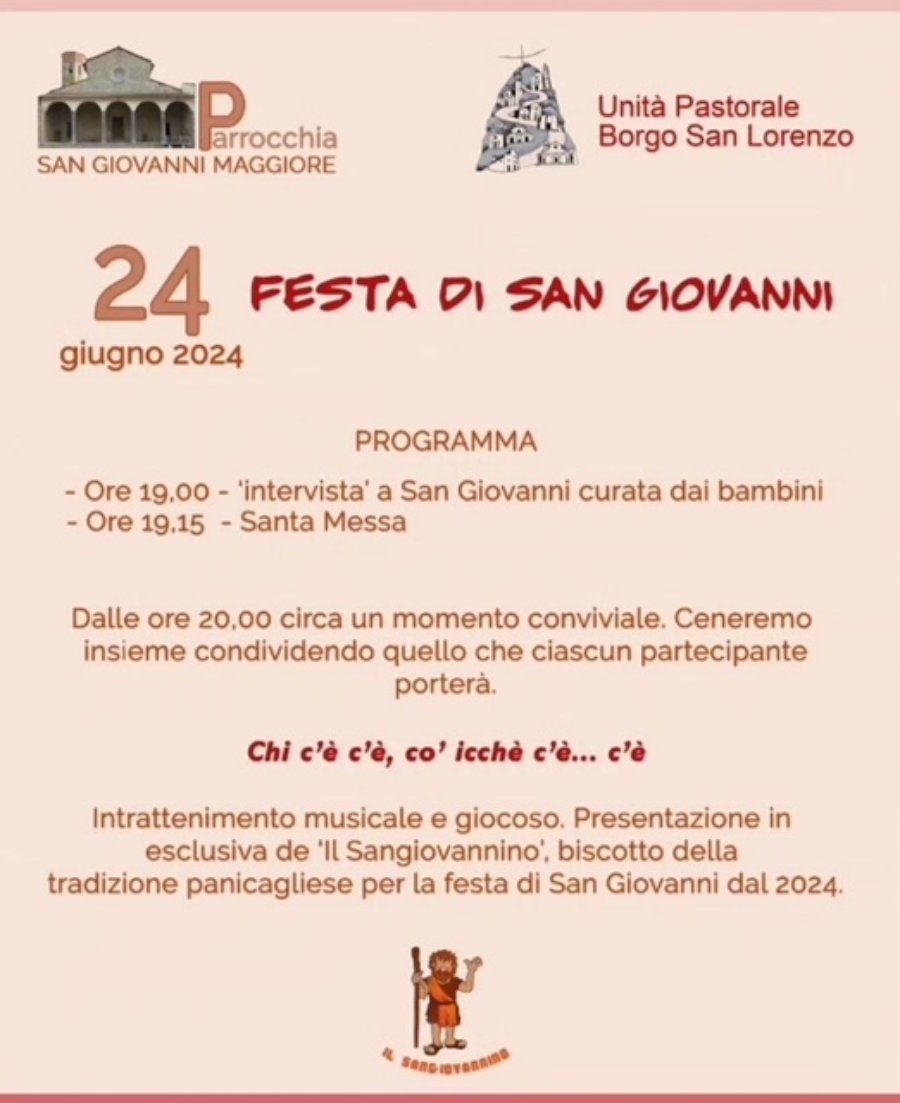 Da un ricco rinfresco – o meglio, una cena in piena regola – allestito sotto il porticato, alla presentazione del Sangiovannino, il biscotto della tradizione panicagliese, coniato per la ricorrenza.