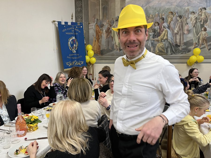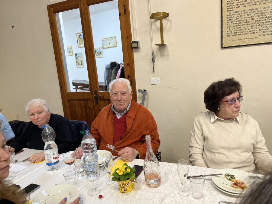 SCARPERIA E SAN PIERO – La Misericordia di San Piero a Sieve, come ormai da tre anni a questa parte, ha celebrato la Giornata internazionale della donna, domenica 8 marzo, con un pranzo aperto alle volontarie, alle collaboratrici e all’intera popolazione di sesso femminile. Sono state oltre cinquanta – oltre a un inaspettato ma gradito ospite – a cogliere l’opportunità di gustare un ottimo pranzo a base di pesce, interamente preparato da volontari e da membri del Consiglio, mentre i dipendenti e altri volontari si sono improvvisati provetti camerieri, agghindati a festa. Fra loro anche il Pievano don Daniele Centorbi, che riveste la carica di Correttore della Confraternita e che ha guidato la preghiera a inizio pasto.