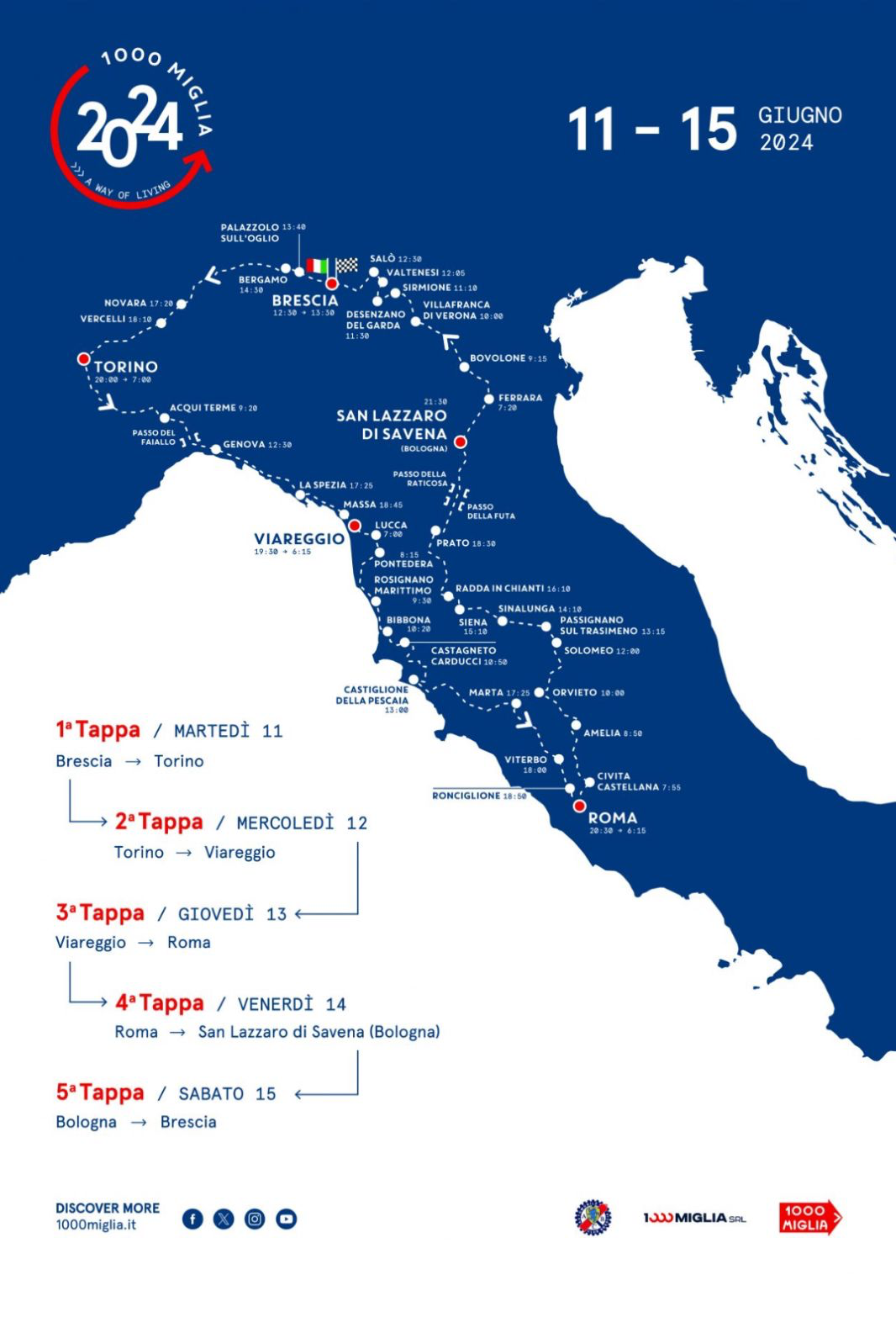 BARBERINO DI MUGELLO – È partita oggi, martedì 11 giugno, da Bresia l’edizione 2024 della Mille Miglia. E venerdì 14 giugno gli equipaggi eseguiranno la quarta tappa, con partenza da Roma e arrivo a San Lazzaro di Savena, passando da Barberino di Mugello nel tardo pomeriggio.