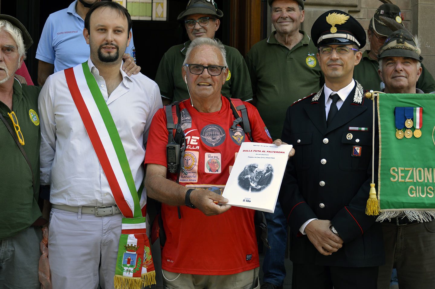 Molti sono stati gli omaggi, calorosa e familiare l’accoglienza. Il Sindaco ha donato il vessillo di Borgo San Lorenzo, il referente incaricato del Comitato della Maratona del Mugello (ricordiamolo, la più antica d’Italia) lo ha insignito di una medaglia della propria manifestazione e il Gruppo Alpini ha regalato una copia del libro mugellano Dalla Futa al Falterona, Edizioni Il Filo (articolo qui)