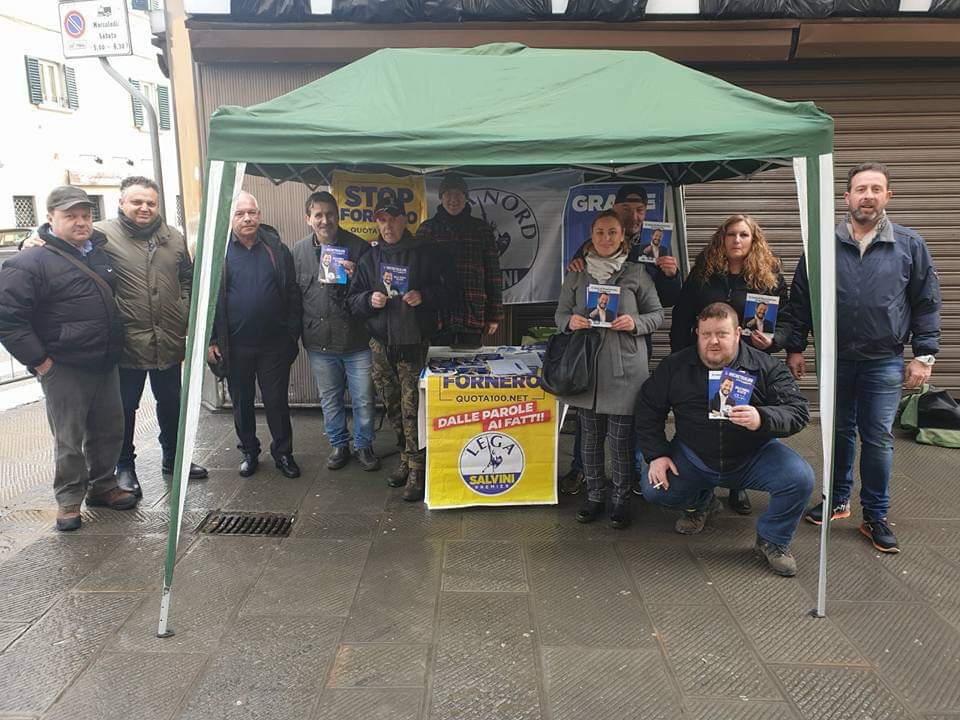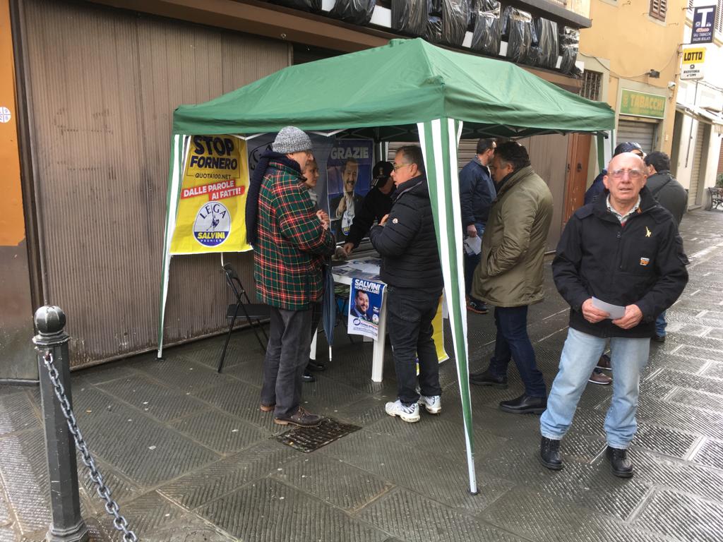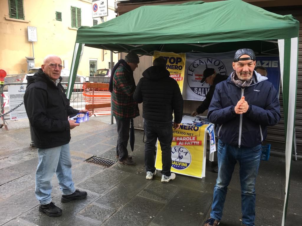 BORGO SAN LORENZO – E’ stata una delle prime uscite di piazza, per la Lega a Borgo San Lorenzo. Che ha piazzato un gazebo in piazza Cavour per raccogliere firme a sostegno di Salvini, e per distribuire materiale di propaganda. Sabato a Vicchio, oggi, domenica, a Borgo San Lorenzo. E a detta dei stessi militanti non sono state poche le firme raccolte e i contatti.