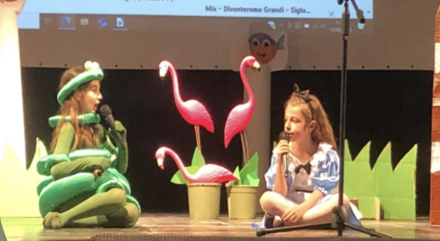 Ricordiamo ancora le parole di una bambina prima di salire sul palco: “Maestra, mentre venivo qua mi batteva forte il cuore, ma ora mi sento tranquilla!”. Questo mix di sana ansia e determinazione è stato il motore di un progetto accolto con entusiasmo e consapevolezza. Dopo aver letto il libro di Lewis Carroll, e riflettuto a fondo sul testo, attraverso la ricerca degli aggettivi qualificativi e la loro trasformazione con sinonimi e contrari per ridescrivere i personaggi e gli ambienti, oltre alla riduzione in riassunti dei capitoli accompagnati da bellissimi disegni, i bambini hanno partecipato attivamente alla riscrittura del copione insieme alle loro insegnanti, dimostrando una maturità e una comprensione profonda insieme a un’innata creatività.