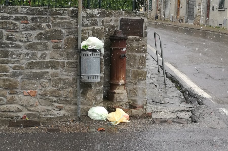 “Continuamente – scrive – si verificano situazioni del genere, prodotte, molto probabilmente, da persone che utilizzano unità immobiliari in quella stessa via, forse (o sicuramente, fate voi) non iscritte nelle liste degli utenti di Alia, per cui non dotate dei contenitori destinati alla raccolta dei rifiuti. E quindi costrette (?) ad utilizzare i cestini stradali, originariamente destinati a ben altro scopo e soprattutto di capacità alquanto limitata.