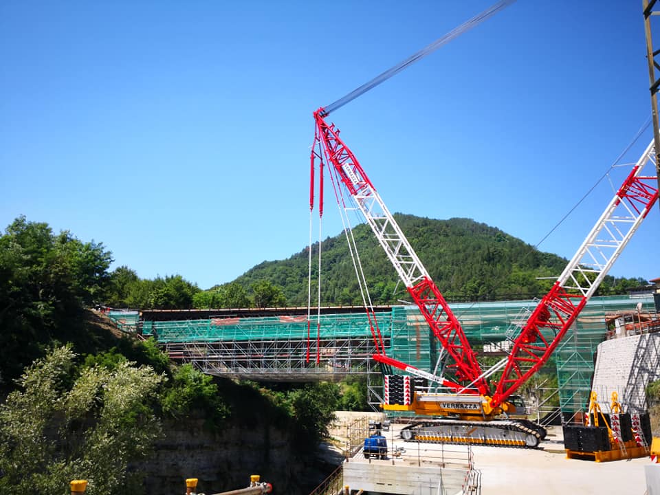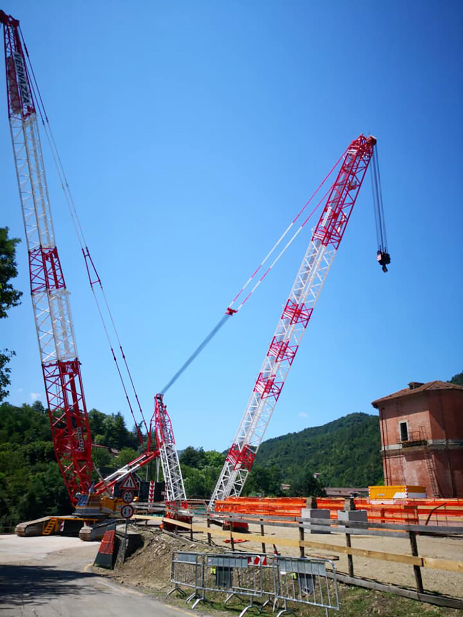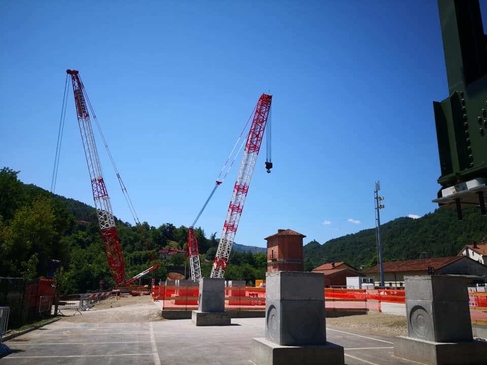 E per muoverlo, e ancor prima per togliere la vecchia travata metallica, sono state montate due gru altissime, la prima pesante 650 tonnellate, l’altra 450.