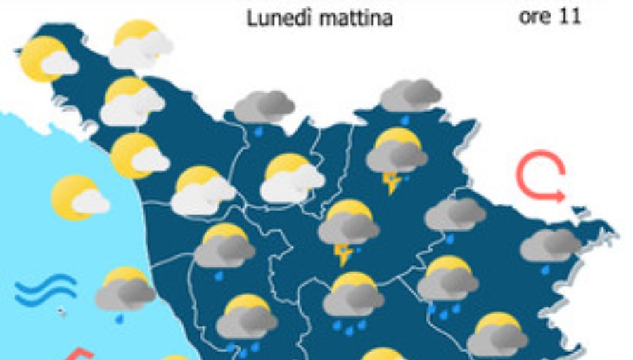 I temporali attesi sono legati alla perturbazione in transito sulla Toscana. Domenica 27, ci saranno rovesci isolati e temporali pomeridiani sui rilievi, ma un deciso peggioramento del meteo è previsto per lunedì 28, con precipitazioni sparse prevalentemente temporalesche. Precipitazioni intense sui settori appenninici, dove saranno possibili anche colpi di vento e forti grandinate. È prevista un’attenuazione dei fenomeni in serata.