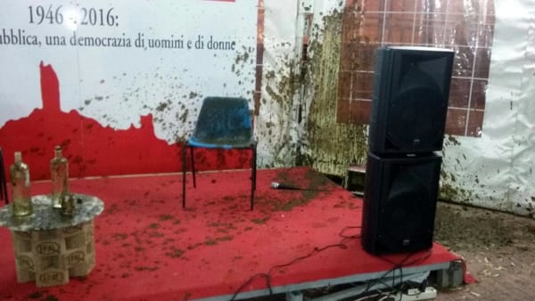 L’autore della contestazione, Giovanni Cialdini, è un imprenditore della zona, nemico giurato di una norma regionale che impone un limite al numero degli animali da macellare. Dopo l’aggressione Rossi si è cambiato ed ha continuato la presentazione. “I compagni mi hanno prestato dei vestiti – dichiara Rossi – ed ho ripreso il dibattito. Se pensano di fermarmi così si sbagliano di grosso”.