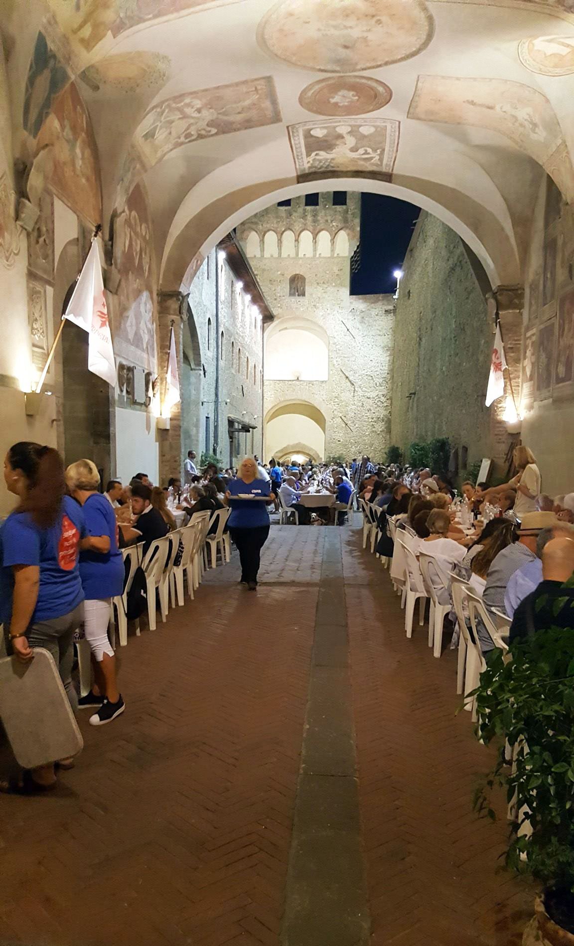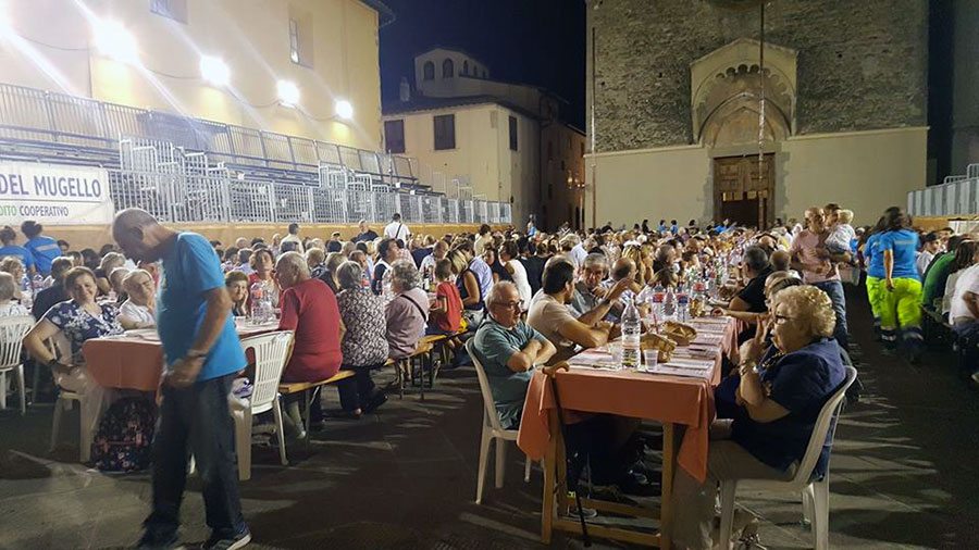 SCARPERIA E SAN PIERO – “Grande successo”, dichiarano dalla Misericordia di Scaperia. Come dar loro torto: l’iniziativa “Scarperia a tavola 2016” (articolo qui) ha fatto 1100 coperti. L’evento gastronomico e di solidarietà, che come edizione spegne ben 17 candeline, organizzato dalla confraternita locale con la collaborazione di tutto il tessuto associativo comunale, ha colto l’adesione di un numero imponente di persone. “Impressionante – dice chi c’è stato – vedere così tanti tavoli nella piazza, nel palazzo e per le vie”. “Un risultato più alto di quel che ci aspettavamo”, ci confida un volontario della fraternità.