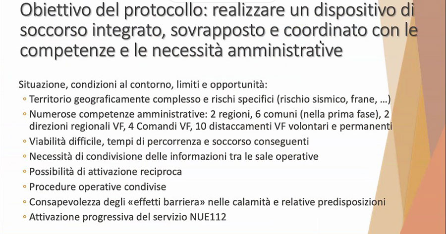 Quest’ultima lo ha sottolineato: “E’ un’occasione preziosa. Ho creduto fin dall’inizio a questo progetto, a un matrimonio che andasse oltre il perimetro tradizionale, un modello innovativo replicabile, e vi ho creduto fin dall’inizio. Non è il punto di arrivo ma un punto di partenza, per aumentare le capacità di soccorso. Occorre trovare tutte le modalità possibili, condividere modalità di azione, di percorsi, di dati e informazioni, strategie.