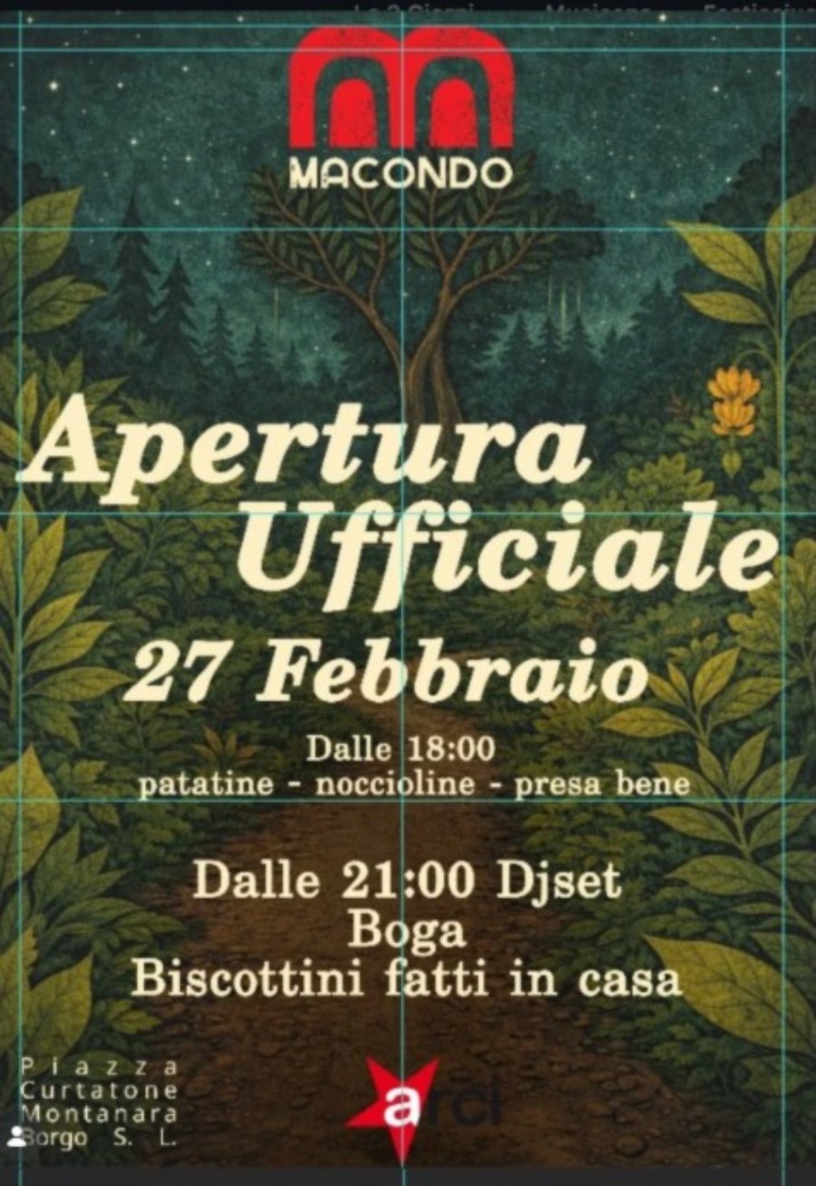 Per l’occasione è previsto, dalle 18.00, un aperitivo seguito a partire dalle 21.00 da una serata dj set, e sarà possibile Sarà possibile tesserarsi direttamente in loco. Spiegano i responsabili: “Durante la serata troverete un modulo per lasciarci impressioni, desideri, bisogni e proposte: la nostra volontà è che Macondo sia uno spazio costruito insieme, aperto, vivo e partecipato”.