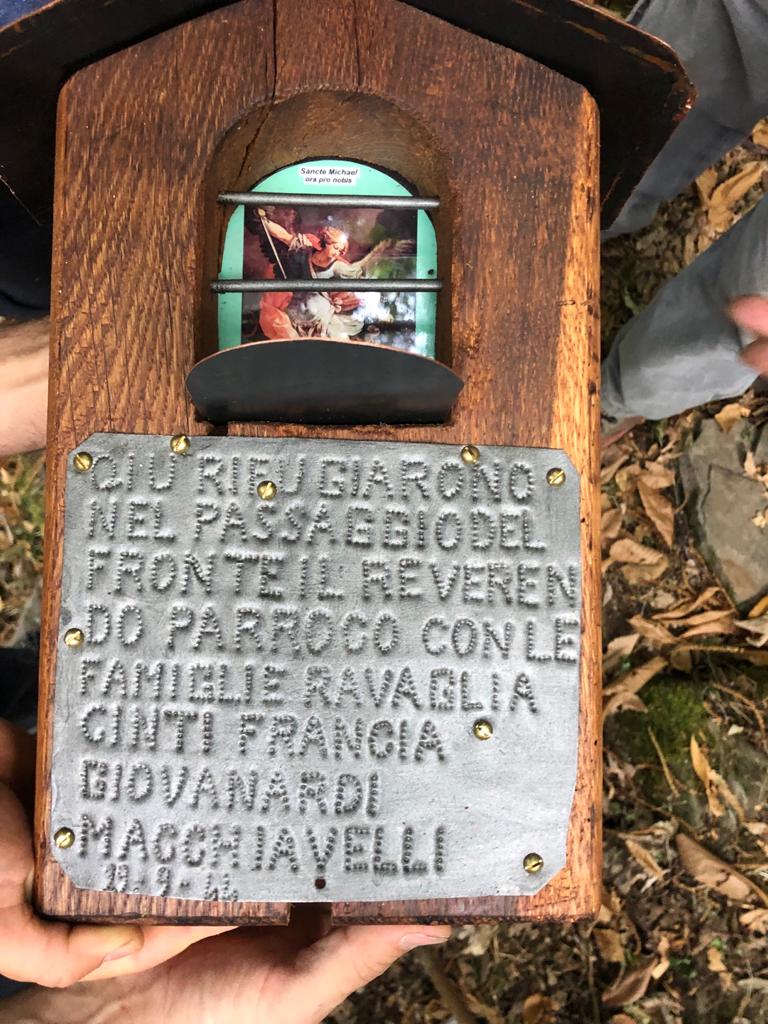 Un altro momento, molto commovente, è stata la posa dell’immagine di San Michele, un voto offerto dalle famiglie che si erano rifugiate durante i bombardamenti della seconda guerra mondiale, nei pressi di Bagnabecco. Questo nascondiglio si raggiunge a piedi, in mezz’ora, partendo da Montalbano e dirigendosi verso l’Alpe di Monghidoro.