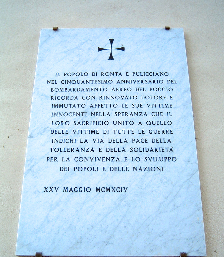 Quest’anno ricorrono gli ottant’anni da quando alcuni aerei americani (qui le foto del 15 Settembre 1944 durante l’avanzata verso Marradi da parte delle truppe americane) bombardarono la frazione di Ronta, in particolar modo la zona del Poggio, allo scopo di colpire la ferrovia e la strada Faentina che, proprio in quel luogo, s’incrociano. Lo scopo era quello di impedire l’uso di quei tratti da parte delle truppe Nazifasciste.