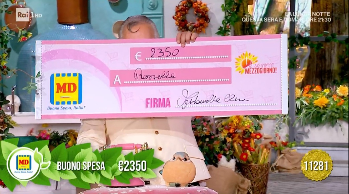 BORGO SAN LORENZO – Duemilatrecentocinquanta euro: è il montepremi vinto dalla signora Rossella di Borgo San Lorenzo durante la trasmissione “È sempre Mezzogiorno”, in onda dal lunedì al venerdì su Rai 1. La donna è riuscita a prendere la linea per partecipare ad il gioco, condotto da Antonella Clerici, dove bisogna indovinare il numero di foglie di un alberello presente in studio. Una bella soddisfazione per Rossella, che oltre al premio riceverà anche in ricordo un “assegno” di cartone firmato da Antonella.