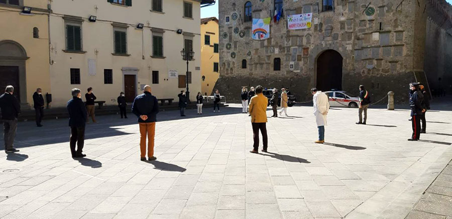 SCARPERIA E SAN PIERO – Scarperia e San Piero saluta il suo medico, il primo vittima del Coronavirus nel territorio con un grande girotondo (a distanza di sicurezza) nella piazza cuore di Scarperia, davanti al Palazzo dei Vicari.
