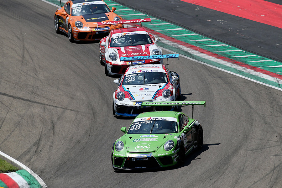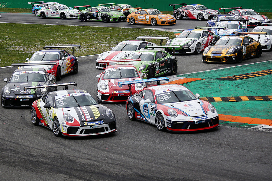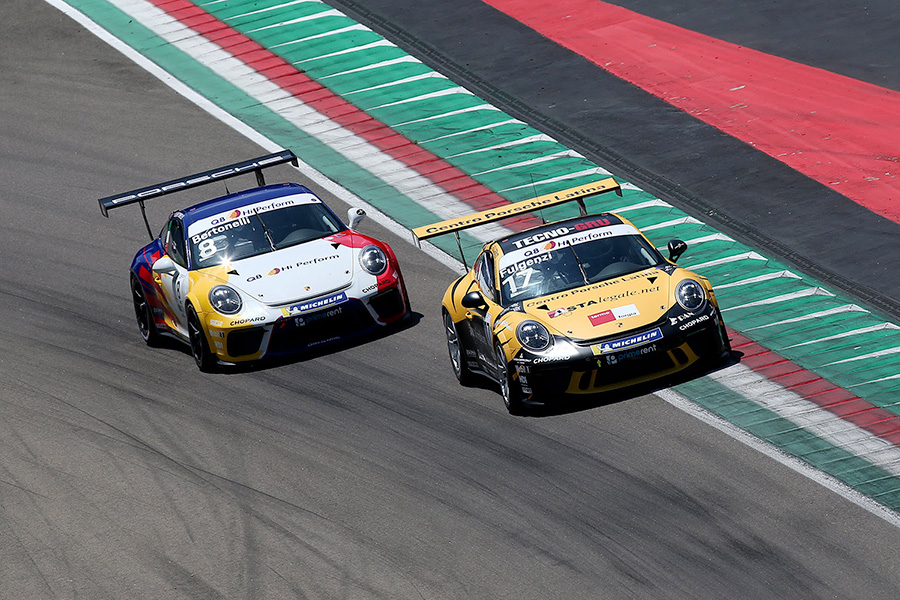 Staccati di una ventina di punti, il Mugello sarà tappa spartiacque per i primi inseguitori del terzetto di testa composto da Bertonelli, Kujala e Conwright. Simone Iaquinta, al momento quarto della generale, ha vinto gara 1 in Toscana nel 2018 e per restare in corsa punta al bis al volante della 911 GT3 Cup di Ghinzani Arco Motorsport – Centri Porsche di Milano, team per il quale si schiera al via pure il 21enne rookie svizzero Mickael Grosso. La top-5 assoluta è completata dal bresciano classe 2000 Tommaso Mosca, che come Iaquinta dovrà confermare competitività dopo la prima pole e il primo successo stagionali colti a Imola per Ombra Racing – Centro Porsche Padova e il tempo più veloce marcato nei test della settimana scorsa proprio al Mugello. Al suo fianco nel box della scuderia bergamasca ci sarà il siciliano Davide Di Benedetto (Centro Porsche Catania), mentre punta alla rimonta Enrico Fulgenzi dopo il recuperato feeling con la 911 GT3 Cup di Tsunami RT – Centro Porsche Latina. Il pilota jesino campione 2013 grazie al successo in gara 2 a Imola ha ritrovato il sorriso che in stagione gli mancava dalla pole position fatta segnare a Monza in aprile. Continua la propria crescita il team AB Racing, che al Mugello conferma le tre 911 GT3 Cup dei Centri Porsche di Roma per l’esperto Giovanni Berton, in cerca di riscatto dopo Imola, e per i giovani Stefano Monaco, il 20enne rookie italo-svizzero protagonista di un incoraggiante inizio di stagione, e Francesco Massimo De Luca, il driver romano classe 1996 che con la compagine diretta in pista da Raimondo Amadio sta mettendo in mostra continui progressi e nell’ultimo round è andato per la prima volta a punti e in entrambe le gare. Proprio il primo arrivo in top-10 sarà l’obiettivo di un altro giovane dello Scholarship Programme, il serbo Jovan Lazarevic, che al via con il team new-entry Duell Race festeggerà il suo 23esimo compleanno proprio nel venerdì del Mugello.